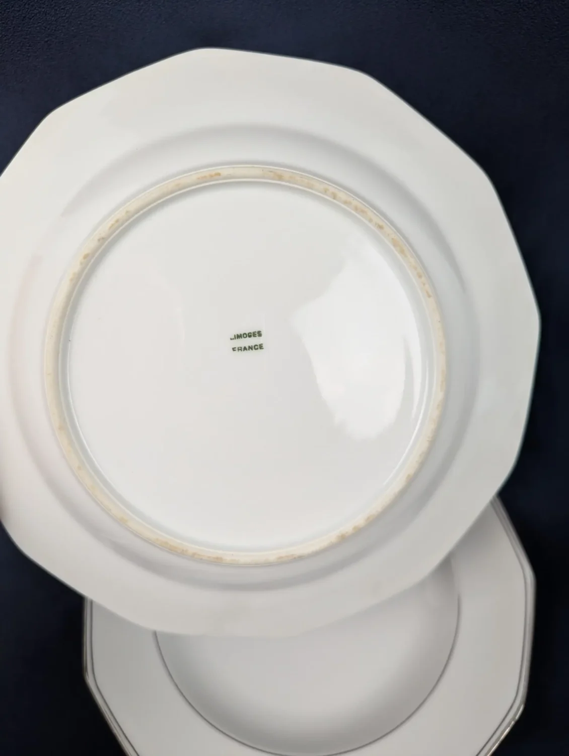 Assiette marquée « Limoges France », gage d’authenticité et de qualité.