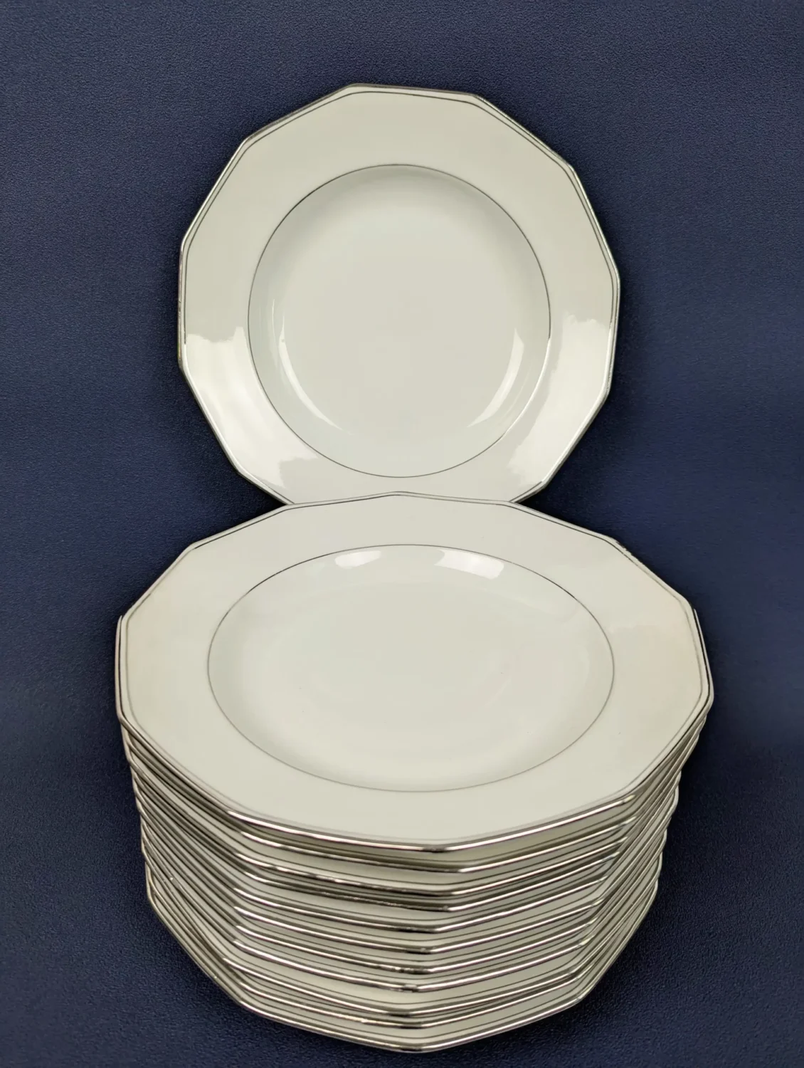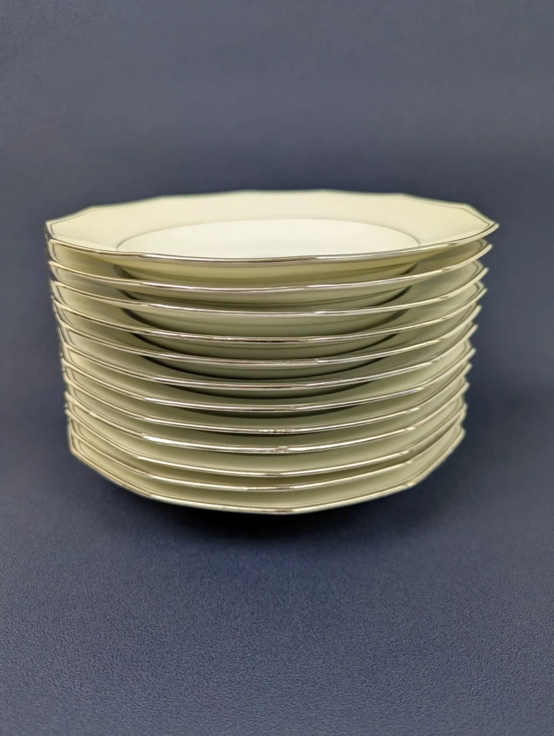 Une magnifique assiette en porcelaine de Limoges France blanche séduit par sa sobriété raffinée et la finesse de son décor. Chaque assiette délicatement rehaussée de fins liserés argentés, offrant une touche d’élégance subtile et vintage à votre table.