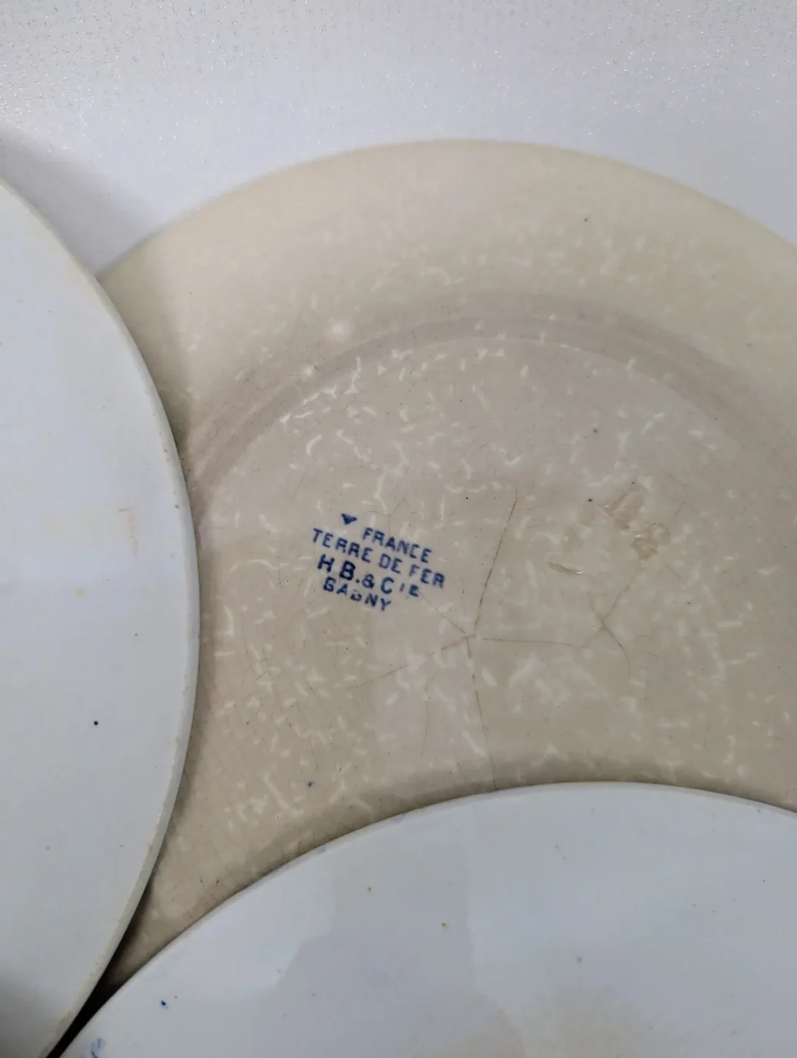 Découvrez ce service de 6 assiettes plates anciennes en Terre de Fer, datant de la fin du XIXe siècle. Composé de modèles dépareillés, il offre un charme authentique et un esprit de collection, parfait pour les amateurs de vaisselle vintage.