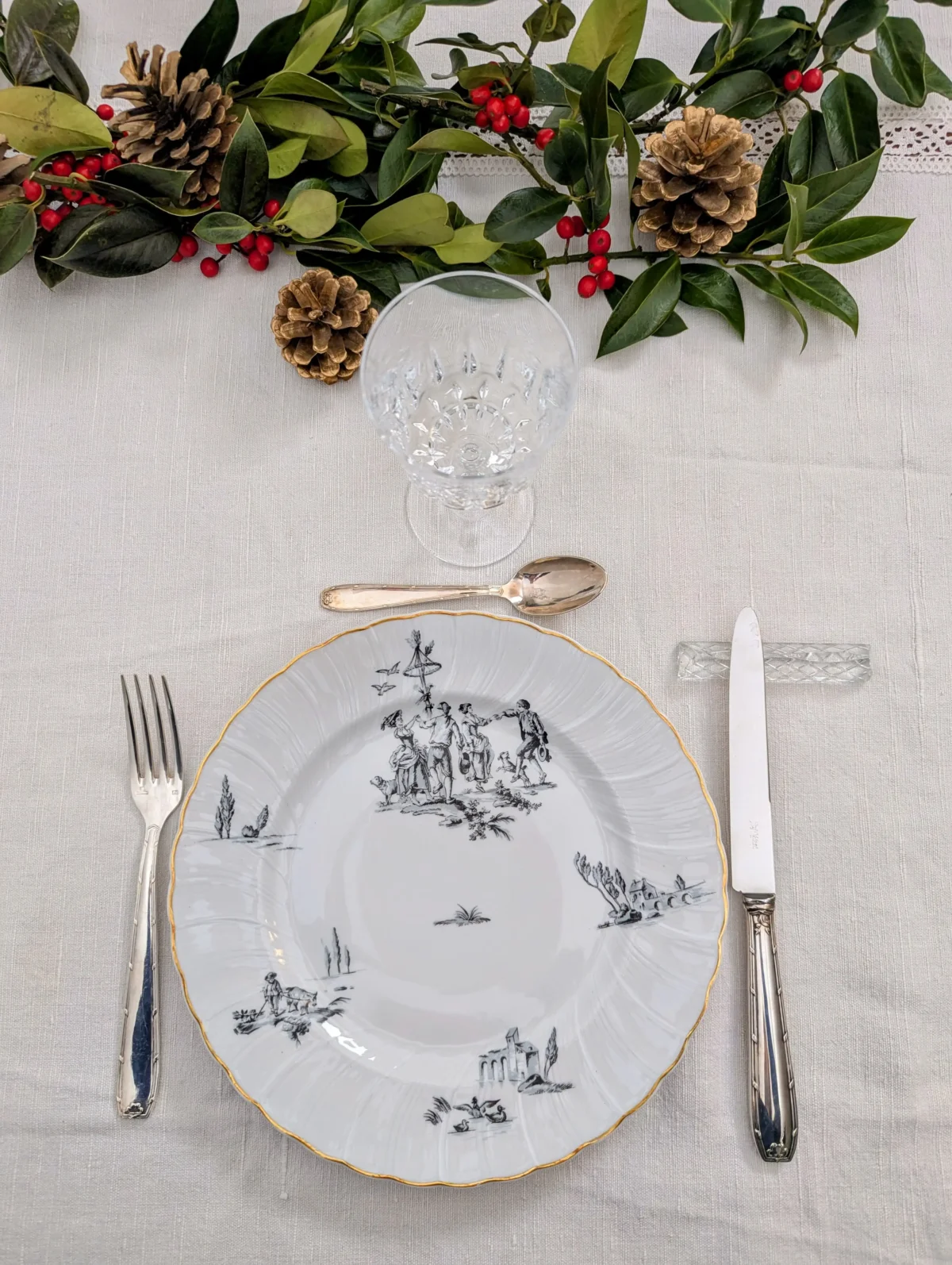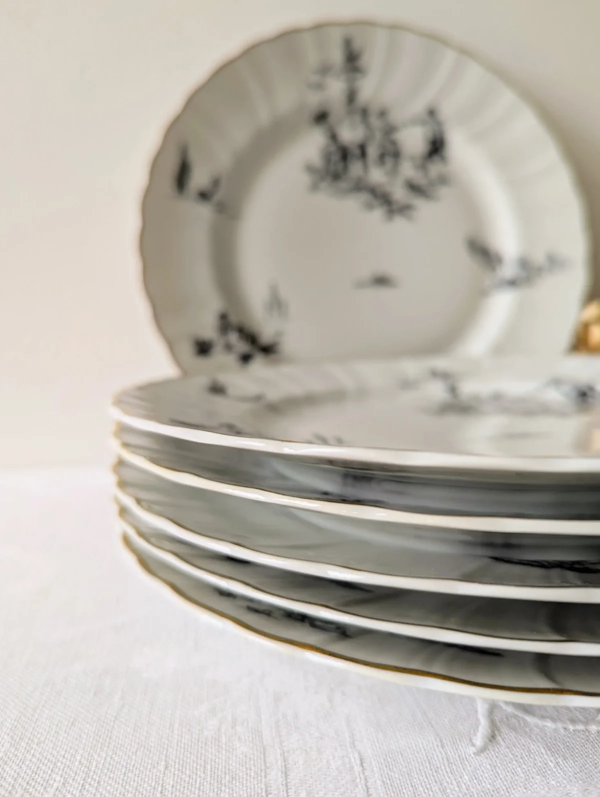 Assiettes Bernardaud Limoges Marie-Antoinette : élégance noire & or
