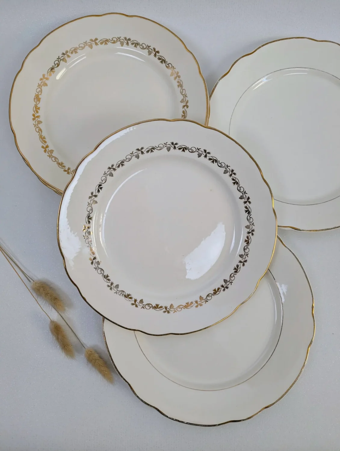 Ces assiettes dépareillées Digoin Sarreguemines, aux lignes sobres et au ton crème doux, se marient parfaitement aux assiettes Villeroy & Boch, légèrement ornées de filets dorés délicats. Ce contraste équilibré crée aussi un effet de table aussi tendance que raffiné, parfaitement dans l’esprit du slow déco.