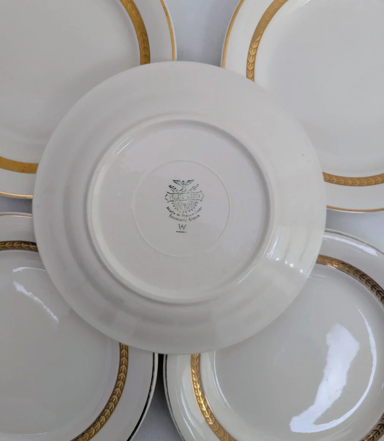 Les assiettes sont bordée de cercles dorés. Ce détail soigné ajoute un charme discret et intemporel à votre vaisselle.