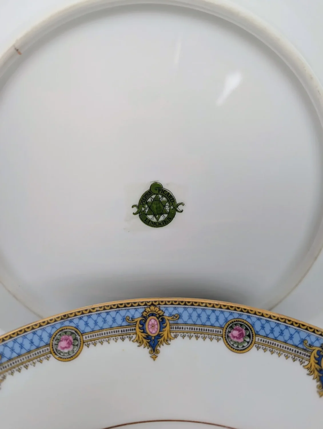 Chaque détail a été pensé pour séduire. Les bords légèrement ondulés, soulignés de filets dorés délicats, encadrent les motifs floraux peints avec soin. Ce type de finition est aussi typique des services de porcelaine ancienne de Limoges, reconnus dans le monde entier pour leur finesse et leur qualité exceptionnelle.