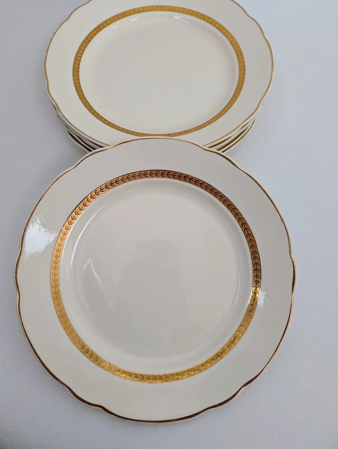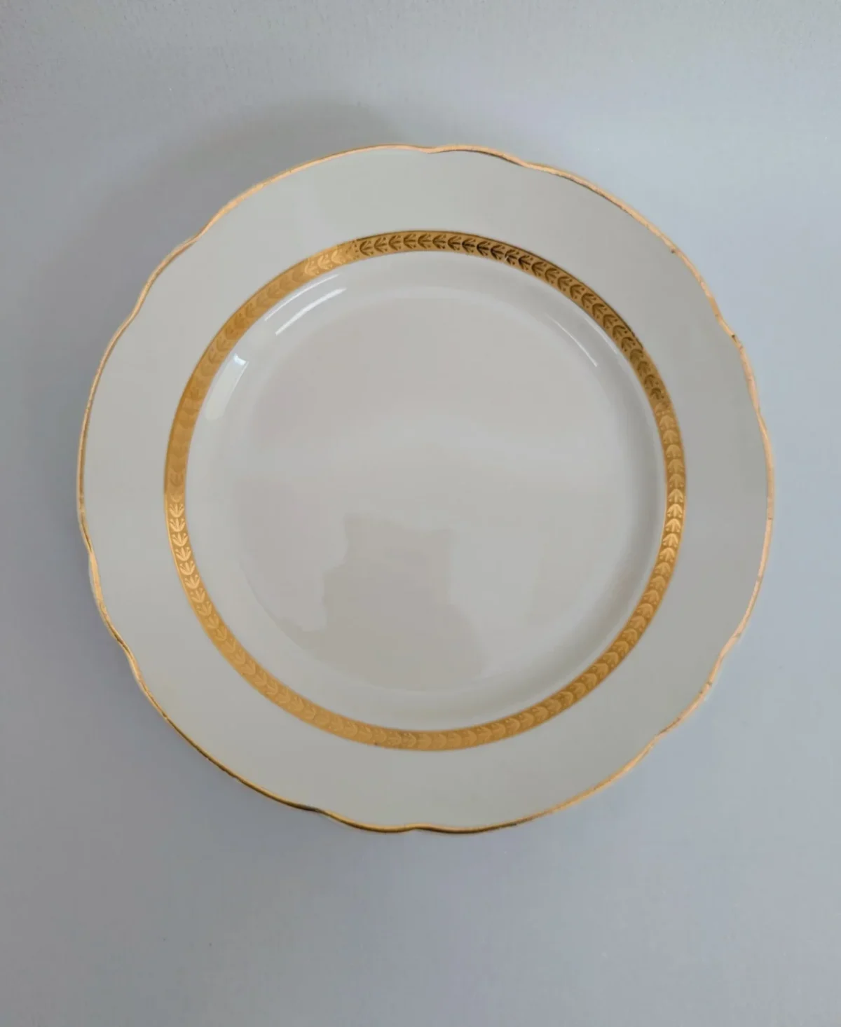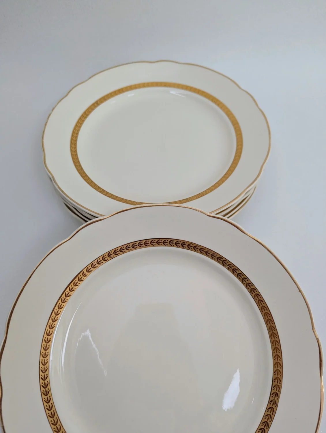 Service de 8 assiettes plates anciennes – Villeroy & Boch Modèle 7301 : charme classique et éclat doré