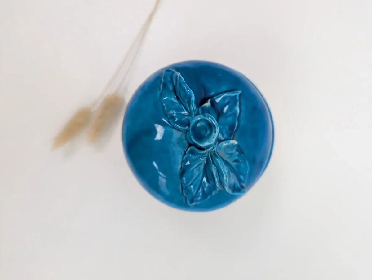Faisant partie de notre collection d’objets déco en céramique, cette boîte pomme bleu en céramique s’inscrit dans l’esprit Villa Brieg : des objets uniques, sélectionnés pour leur originalité et leur charme rétro.
