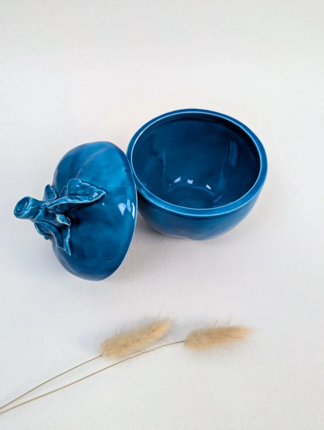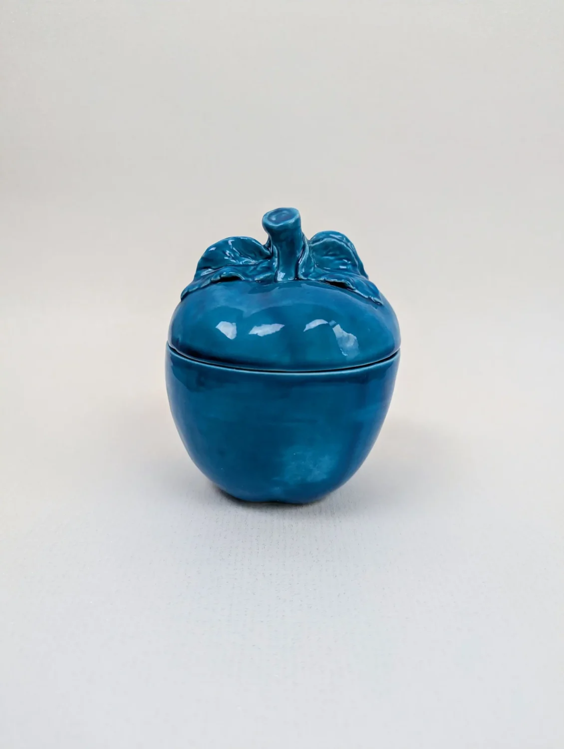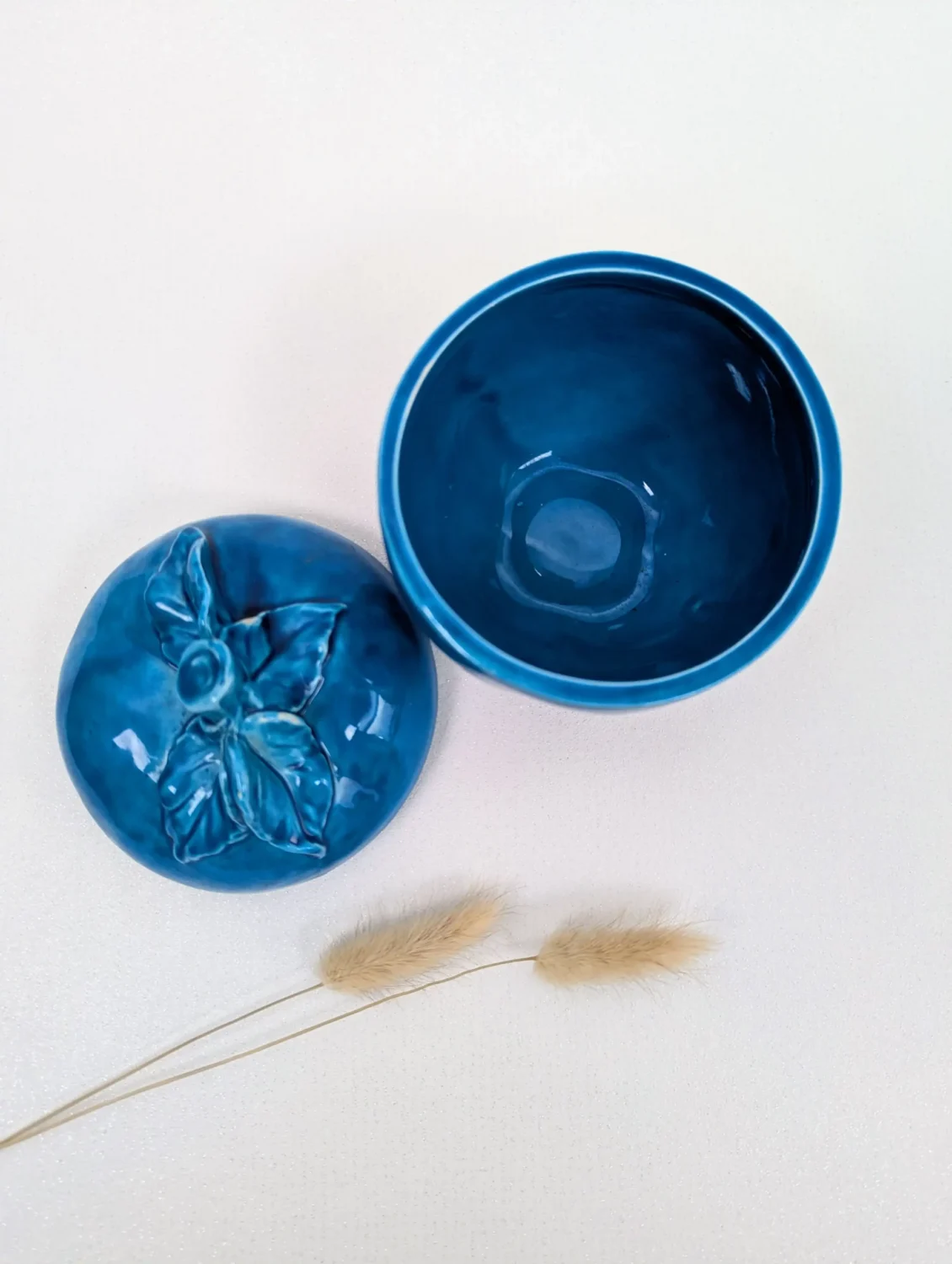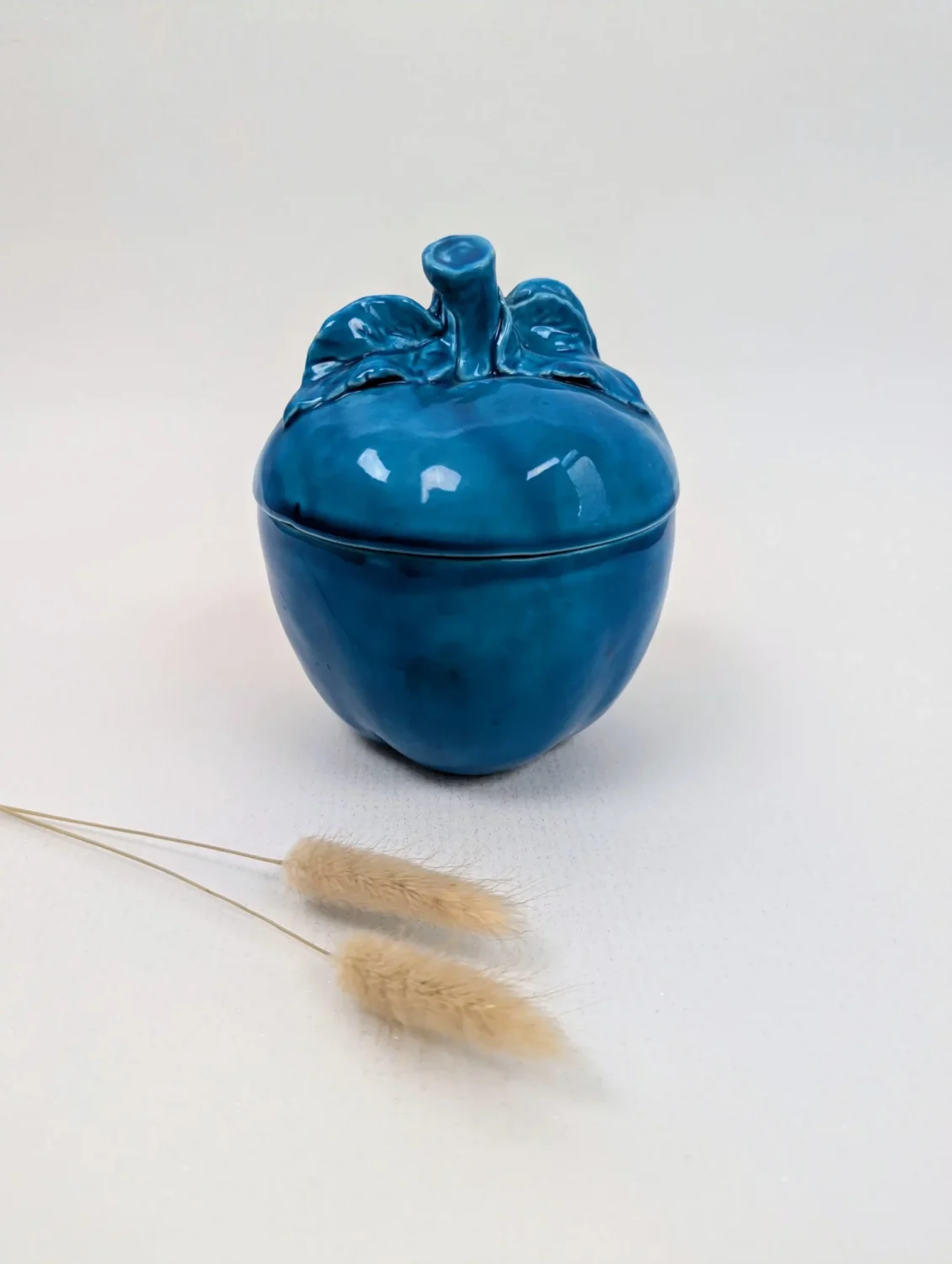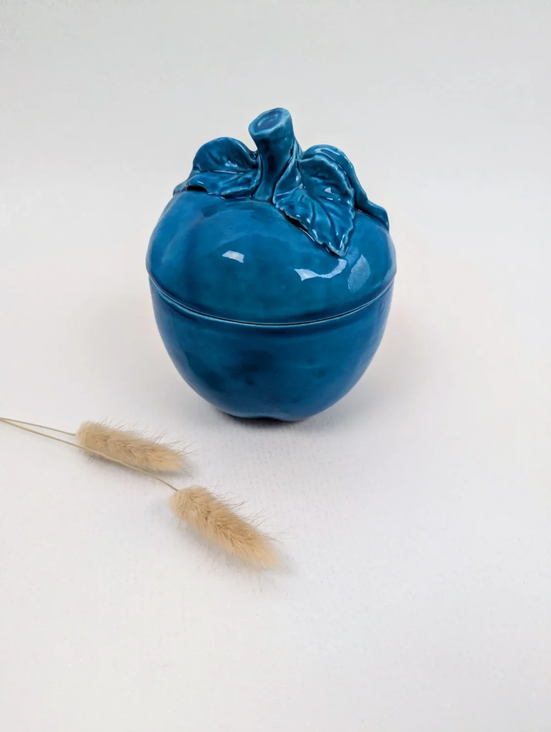 Boîte Pomme Bleu Céramique – Barbotine Vintage