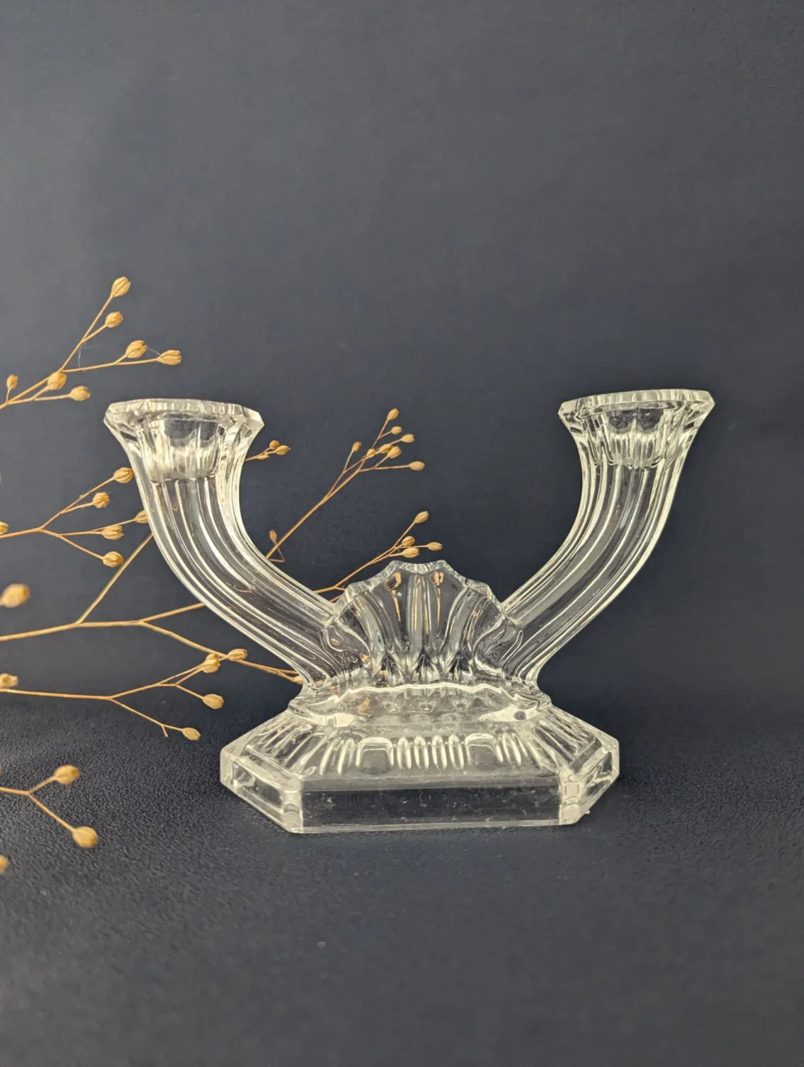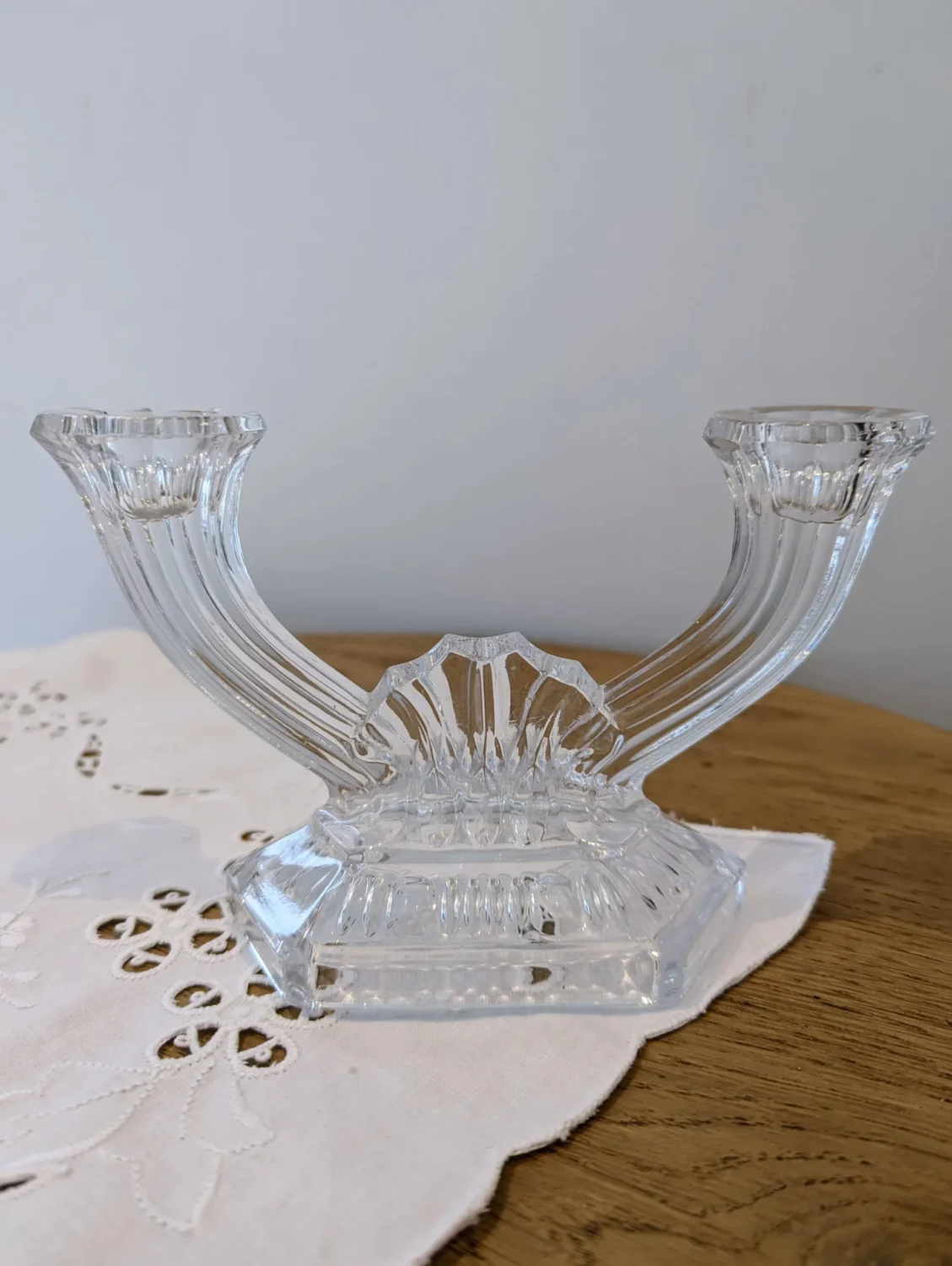 Un bougeoir Cristal Art Déco Double raffiné, intemporel