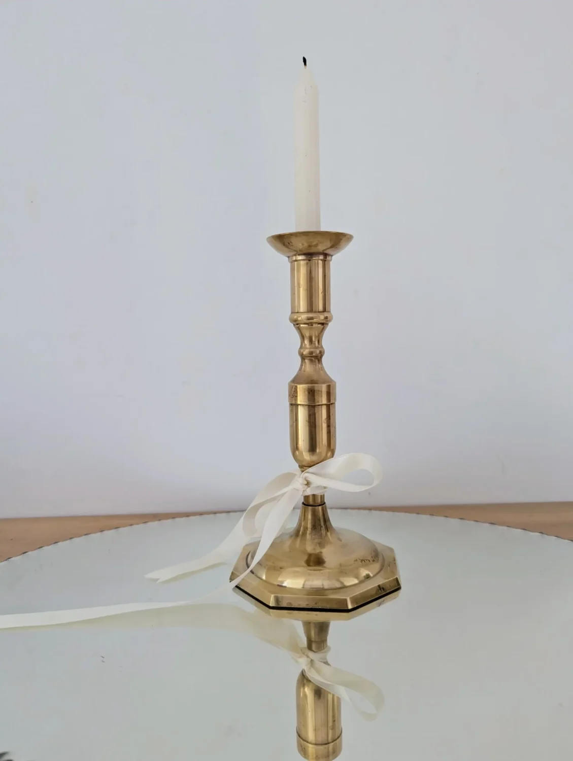 Apportez une touche d’élégance à votre intérieur avec ce bougeoir flambeau en laiton doré au charme vintage.