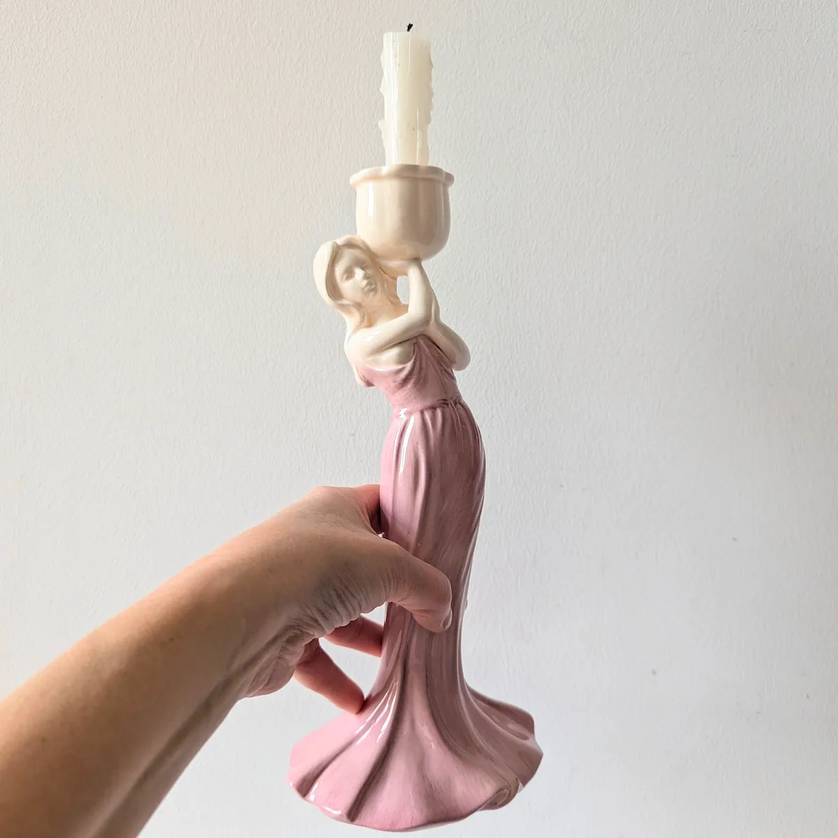 Absolument. Ce bougeoir vintage céramique rose est une pièce de milieu de siècle authentifiée. Pour un amateur de chandeliers anciens, c’est une acquisition rare qui se distingue par sa couleur et sa posture sculpturale unique.