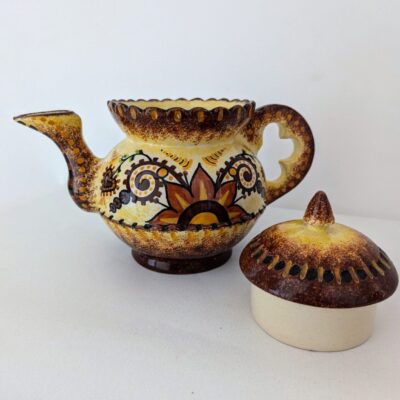 Son état très satisfaisant renforce encore sa valeur décorative. La surface conserve un bel éclat, le décor reste net, et la forme garde toute sa force. Ainsi, le broc accompagne votre maison au quotidien, sans effort. Pour une combinaison encore plus expressive, vous pouvez le mettre en scène avec une pièce sœur comme un broc en céramique vintage violet à anse. Les deux pichets dialoguent alors dans un esprit collection, très décoratif.