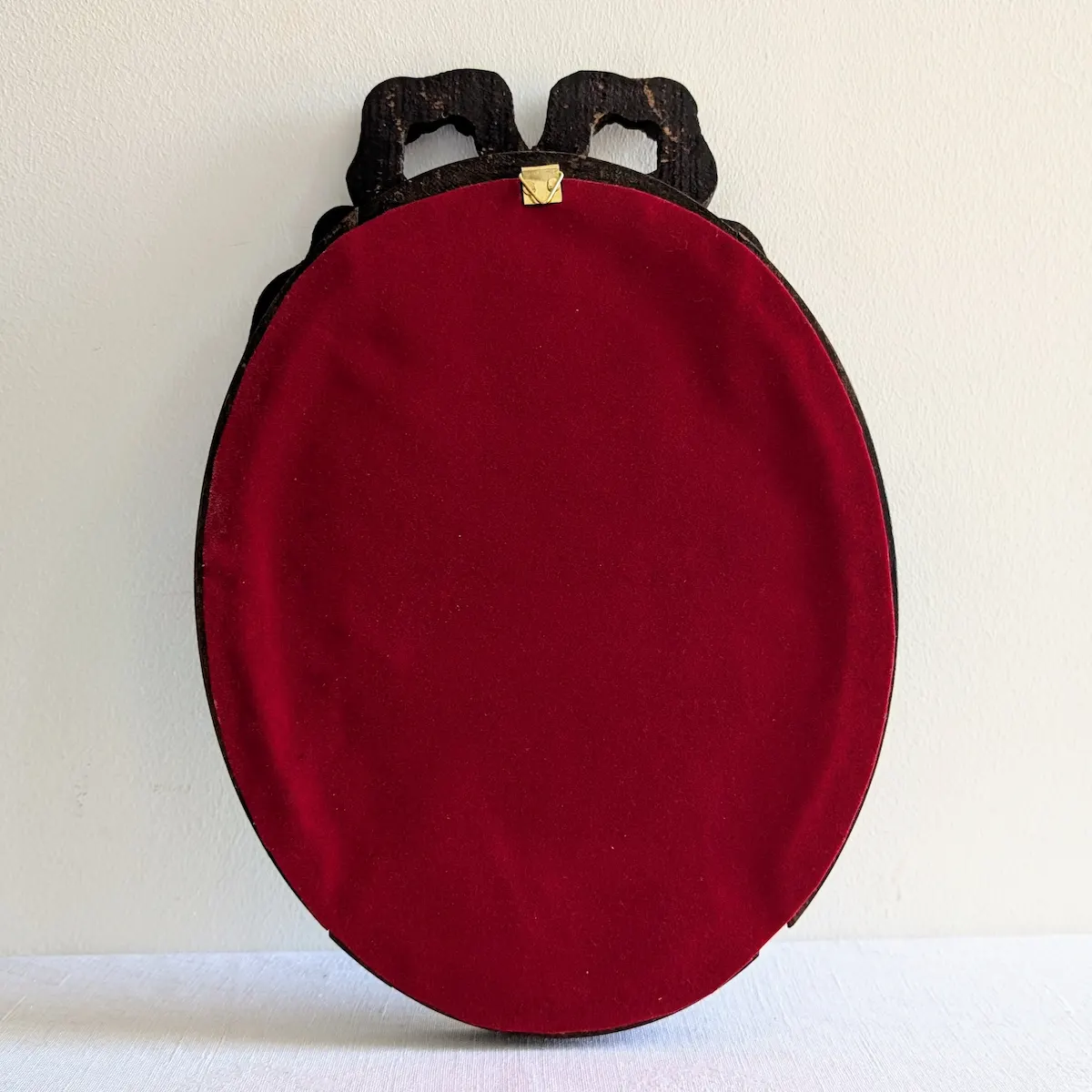 Cadre ancien ovale en bois sculpté nœud Louis XVI et illustration Japonica