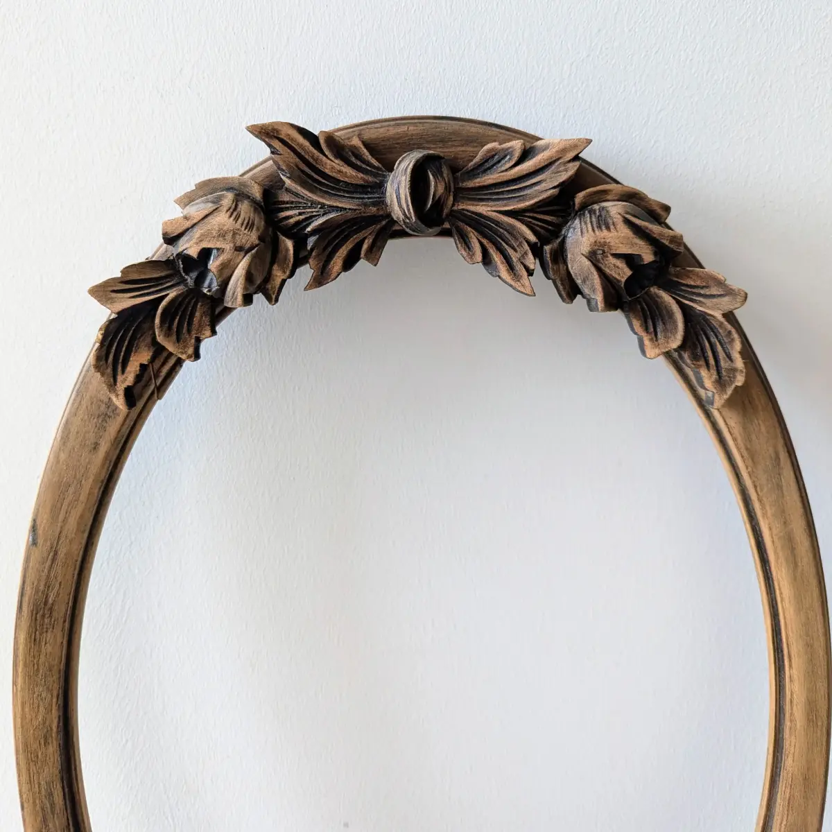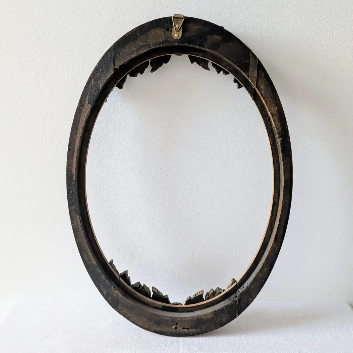 Cadre ancien ovale sculpté en bois à décor floral début XXe