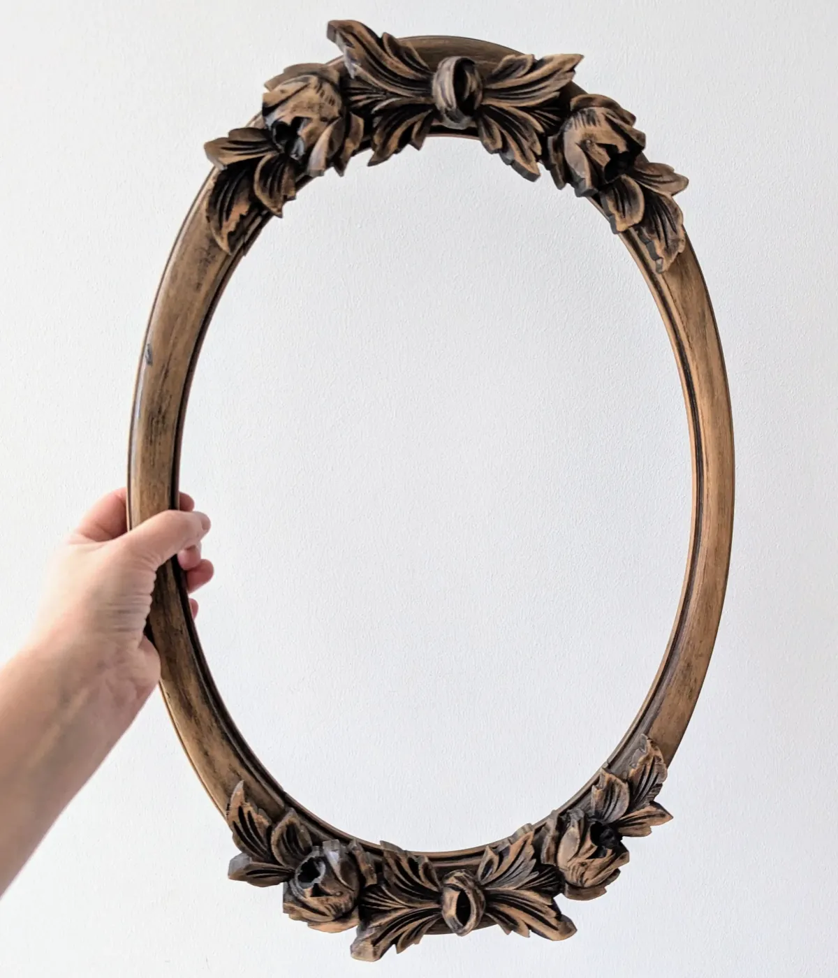 Un regard sur ce cadre ancien ovale en tilleul sculpté