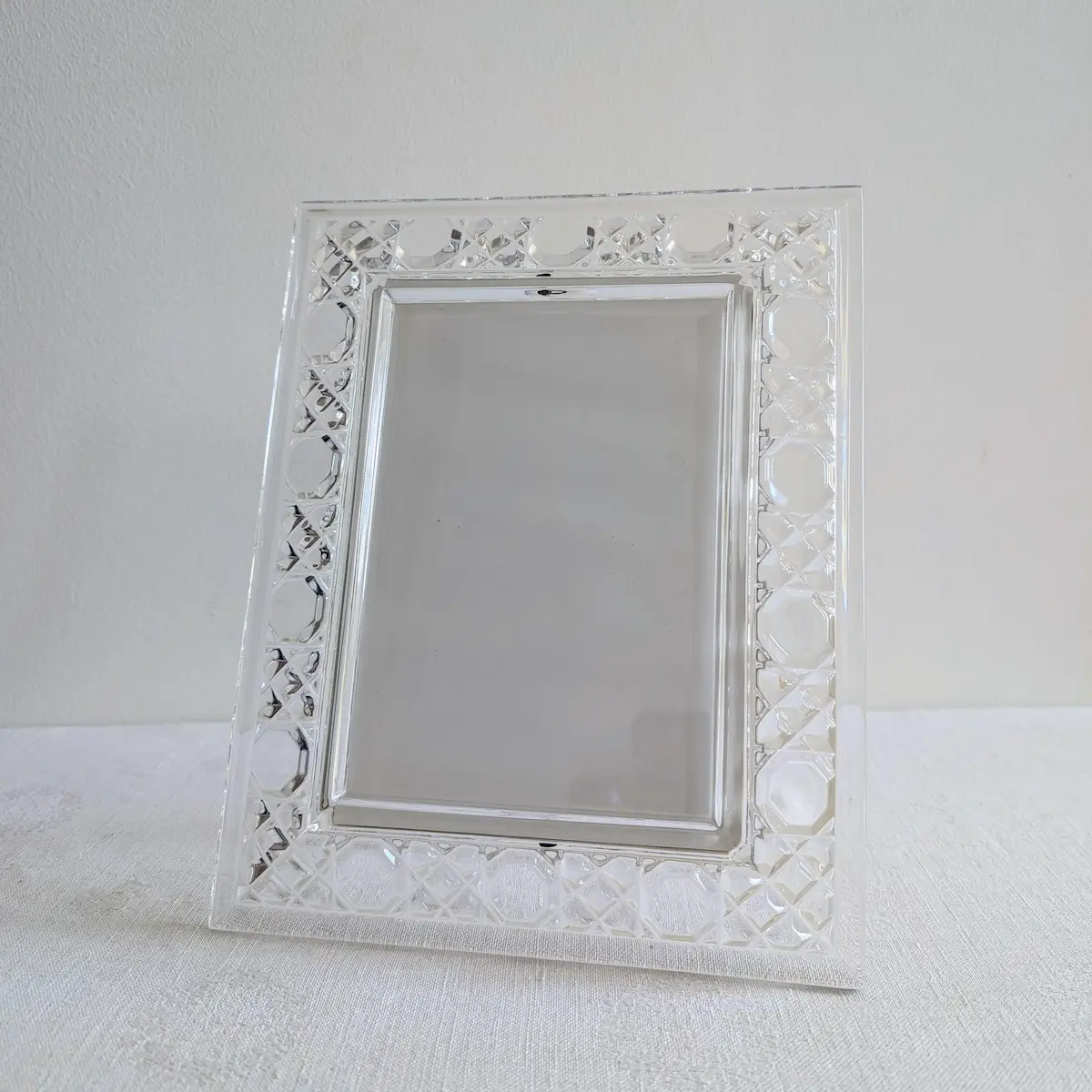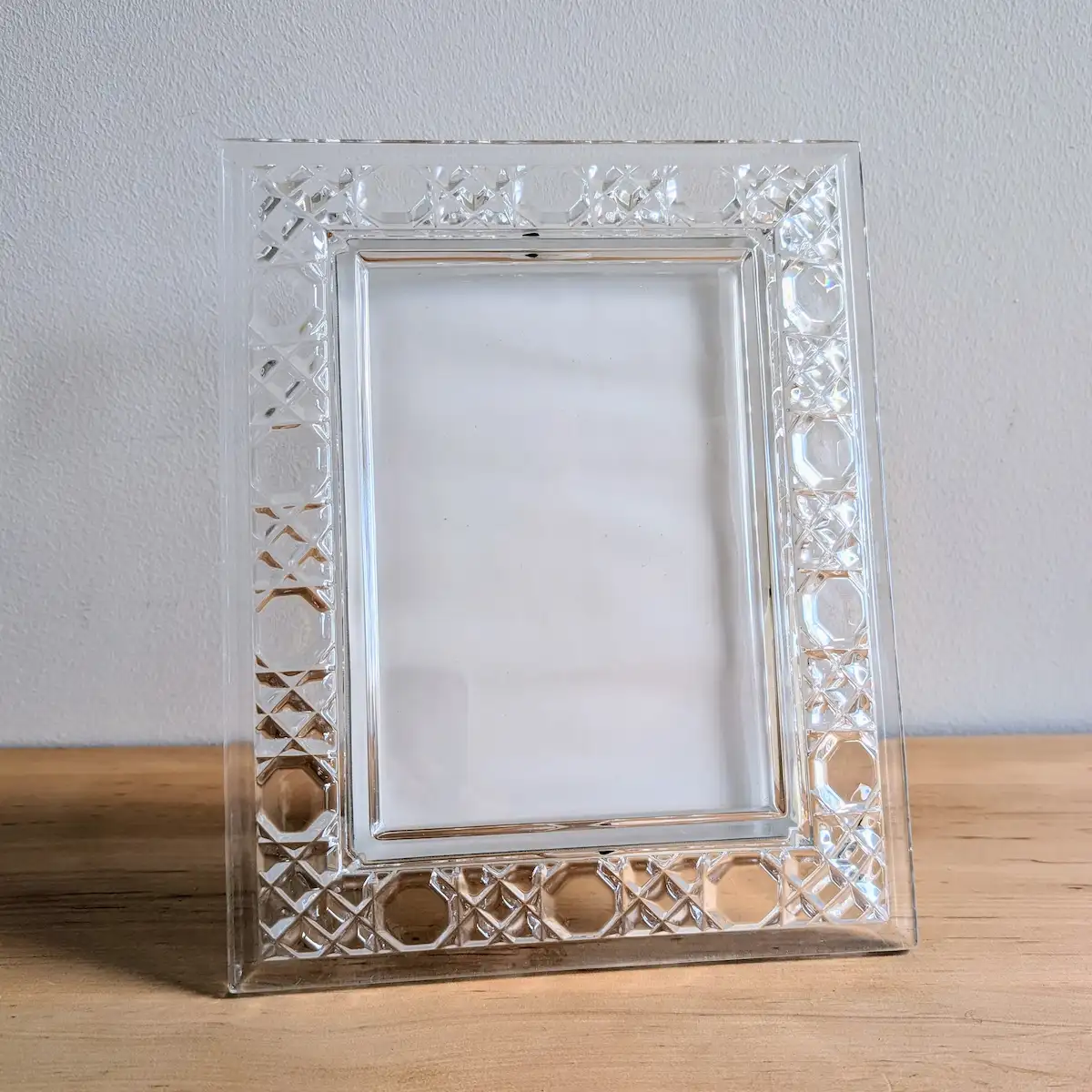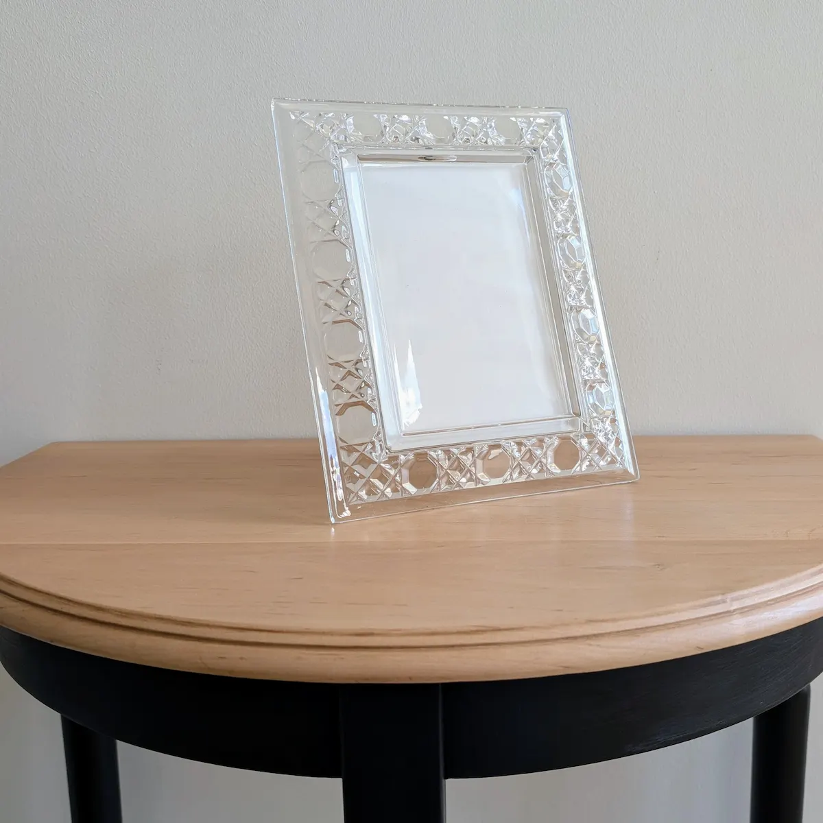 Cadre photo ancien en verre pressé à décor de croisillons années 60