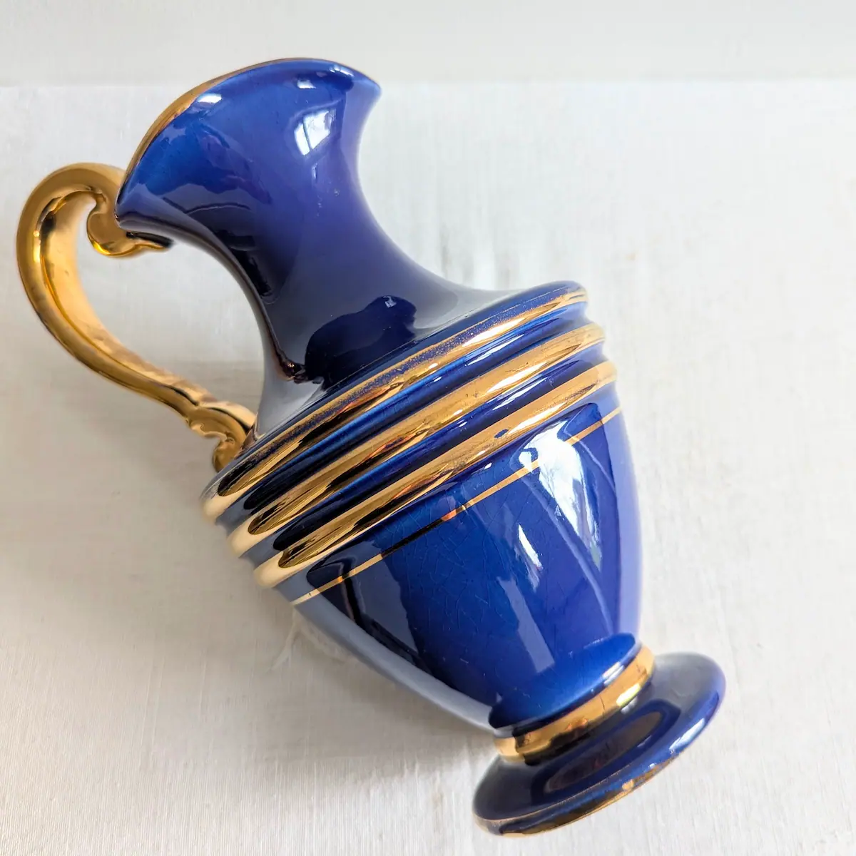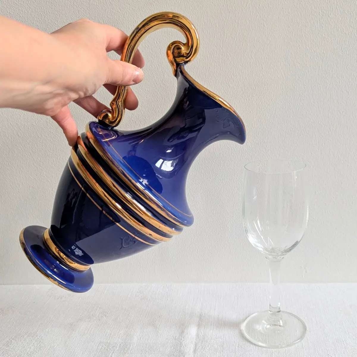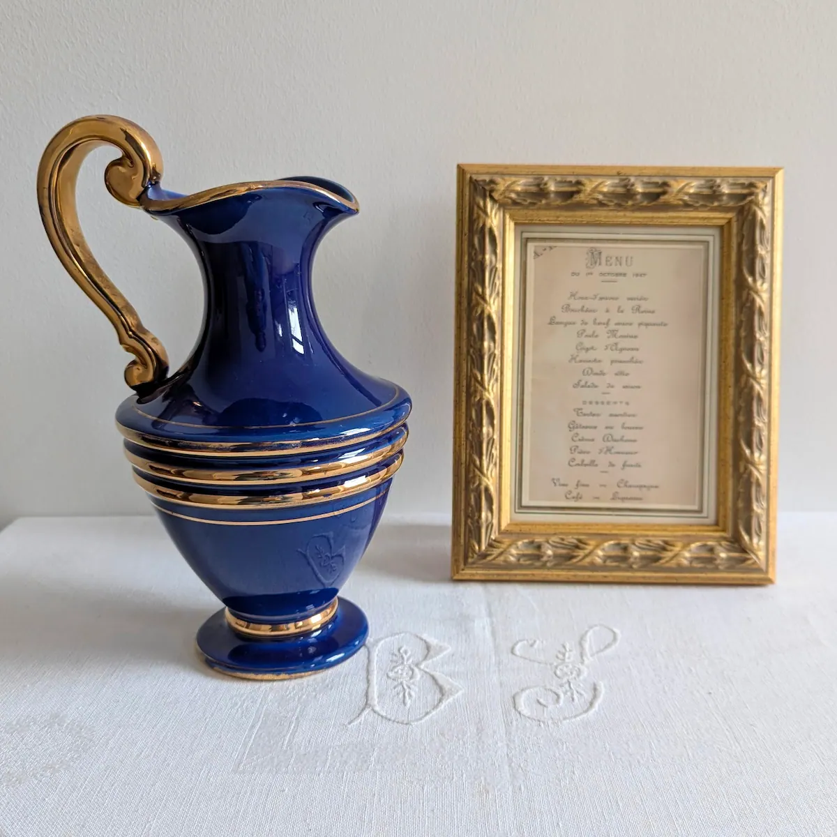 Carafe ancienne céramique bleu et or : 1 pépite vintage française