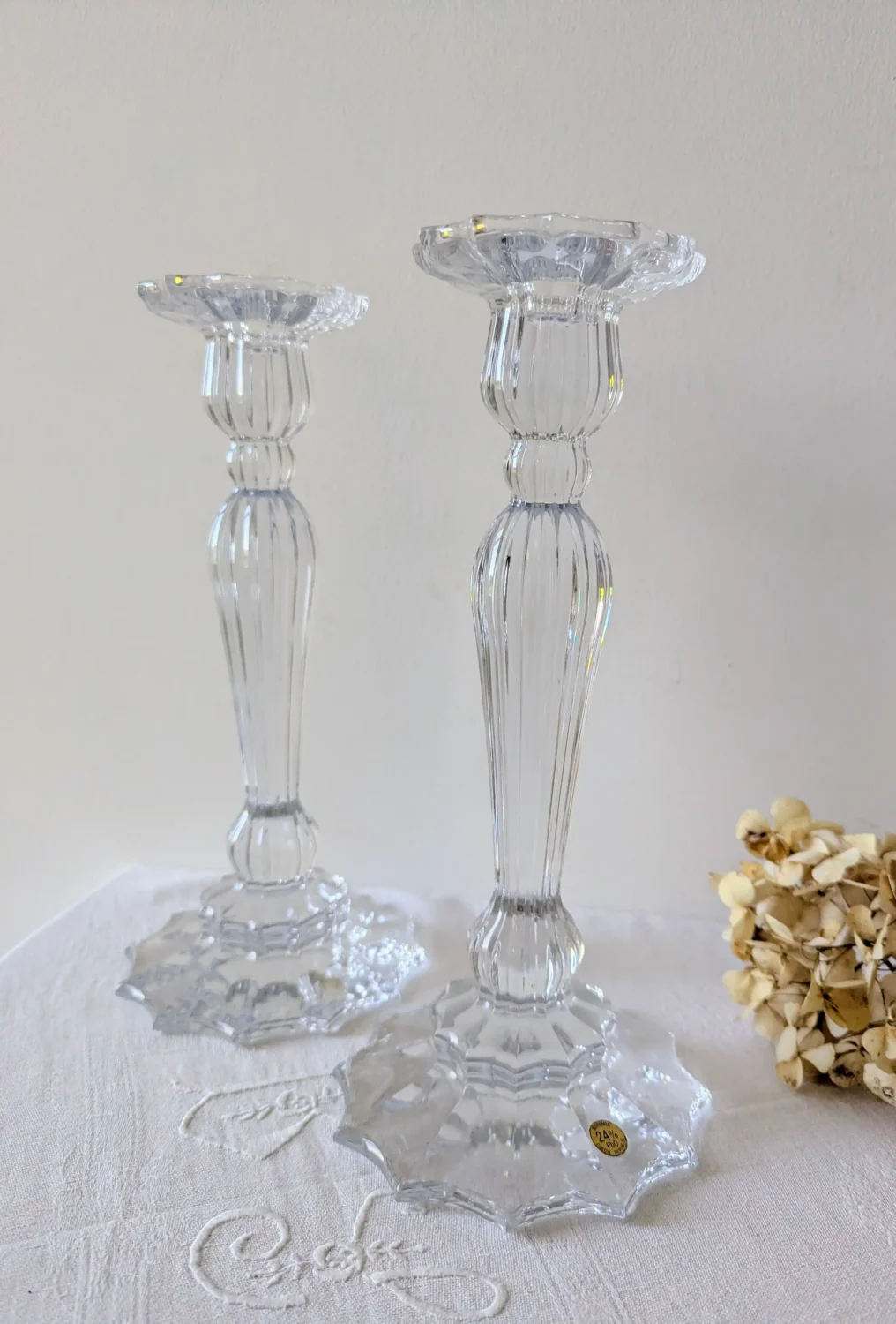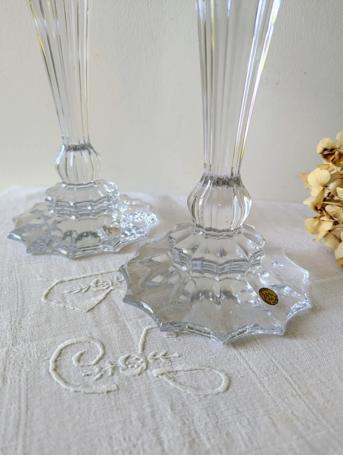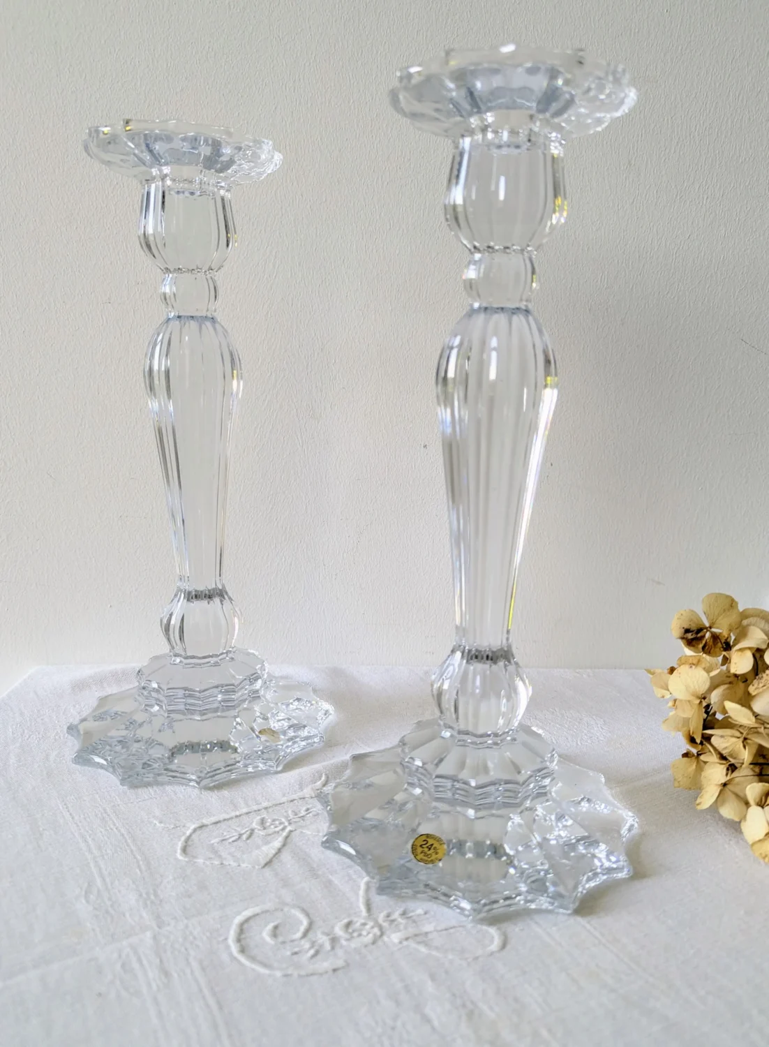 Paire de Chandeliers Flambeau en Cristal de Bohème – L’Éclat Discret du Luxe