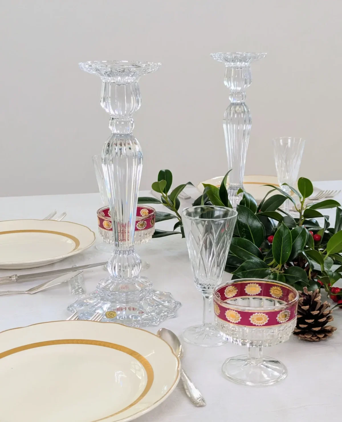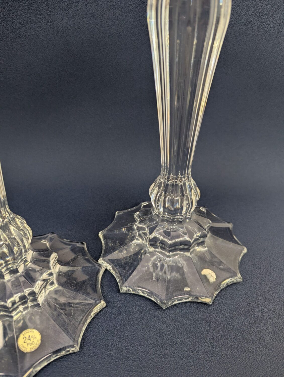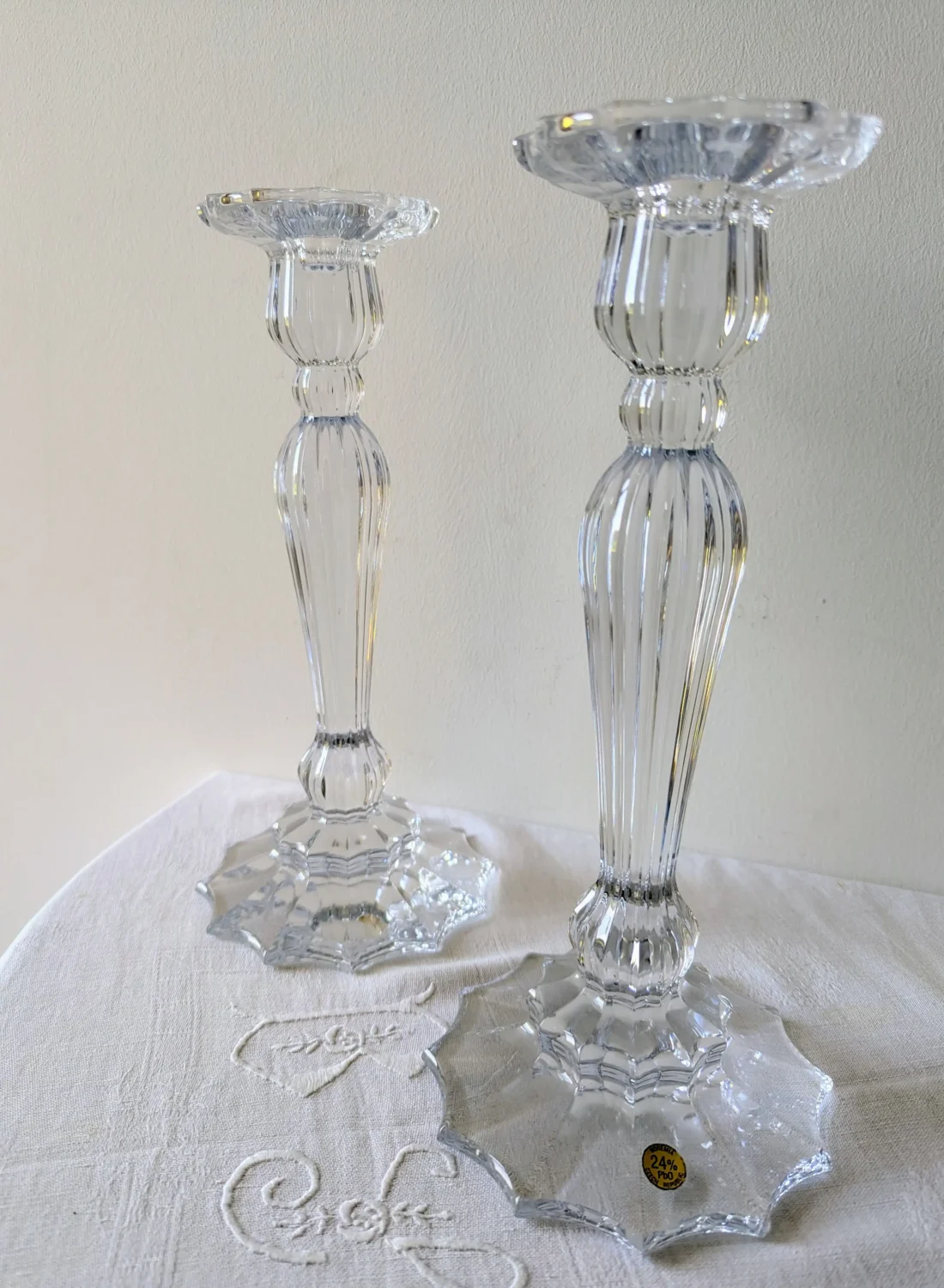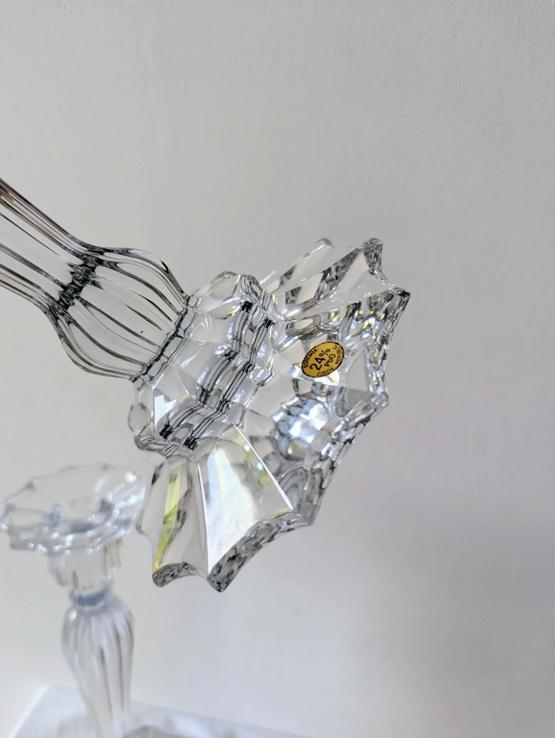 Paire de Chandeliers Flambeau en Cristal de Bohème – L’Éclat Discret du Luxe
