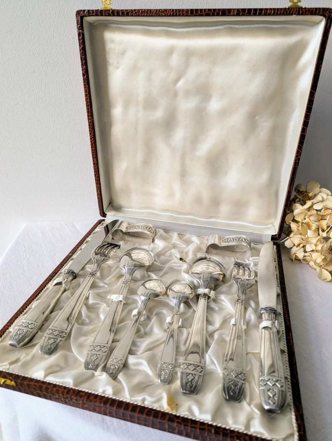 Ce coffret vintage allie beauté, mémoire et émotion. Offrir ces couverts, c’est offrir bien plus qu’un simple service : c’est transmettre une part du savoir-vivre à la française. Ce duo “Monsieur & Madame” évoque la complicité et le partage. Idéal pour un mariage, une Saint Valentin ou un Noël raffiné, il trouvera naturellement sa place dans une décoration élégante et intemporelle. Un très beau coffret pour une demande en mariage. Retrouvez notre sélection d’idées cadeau vintage.