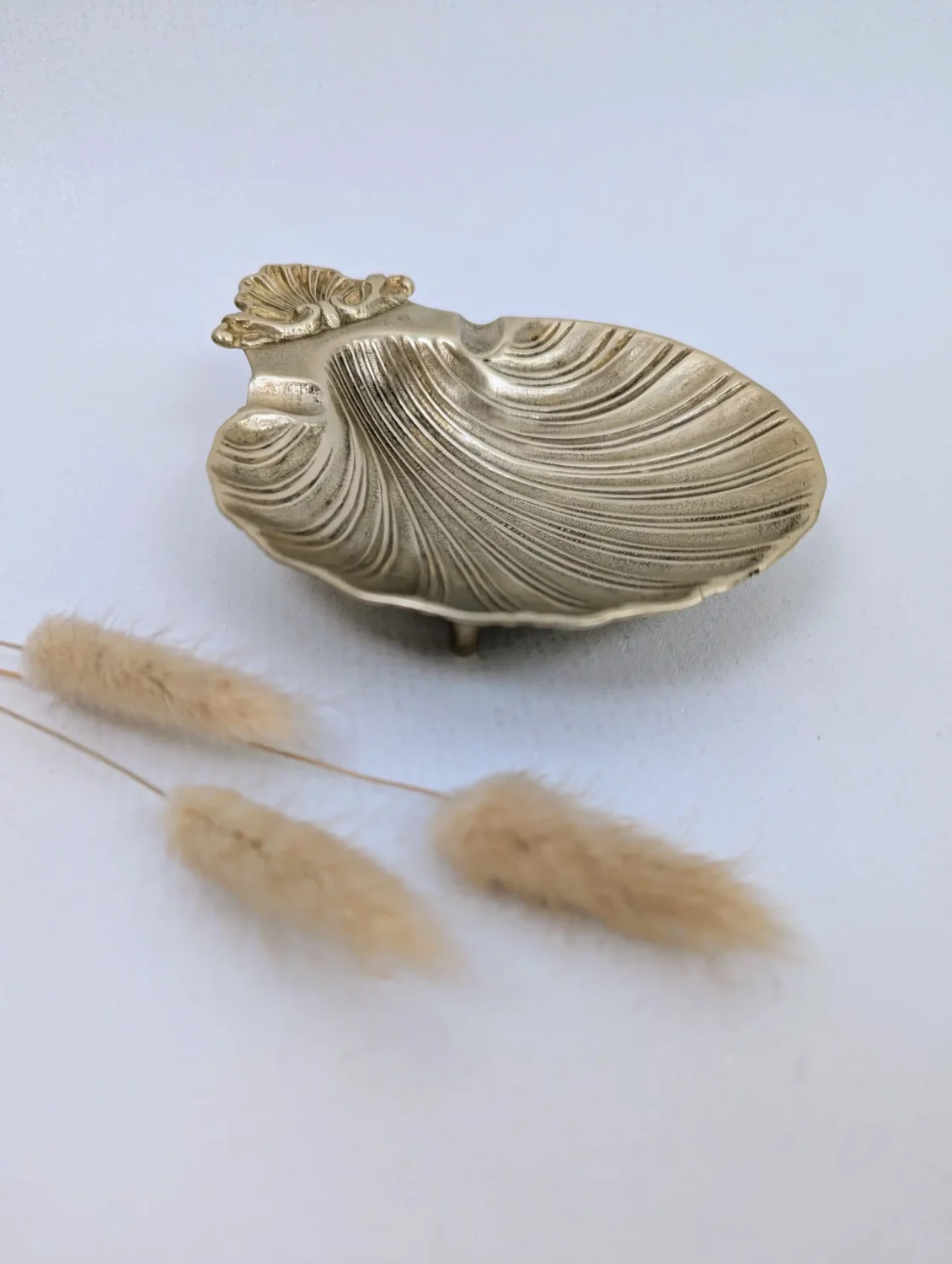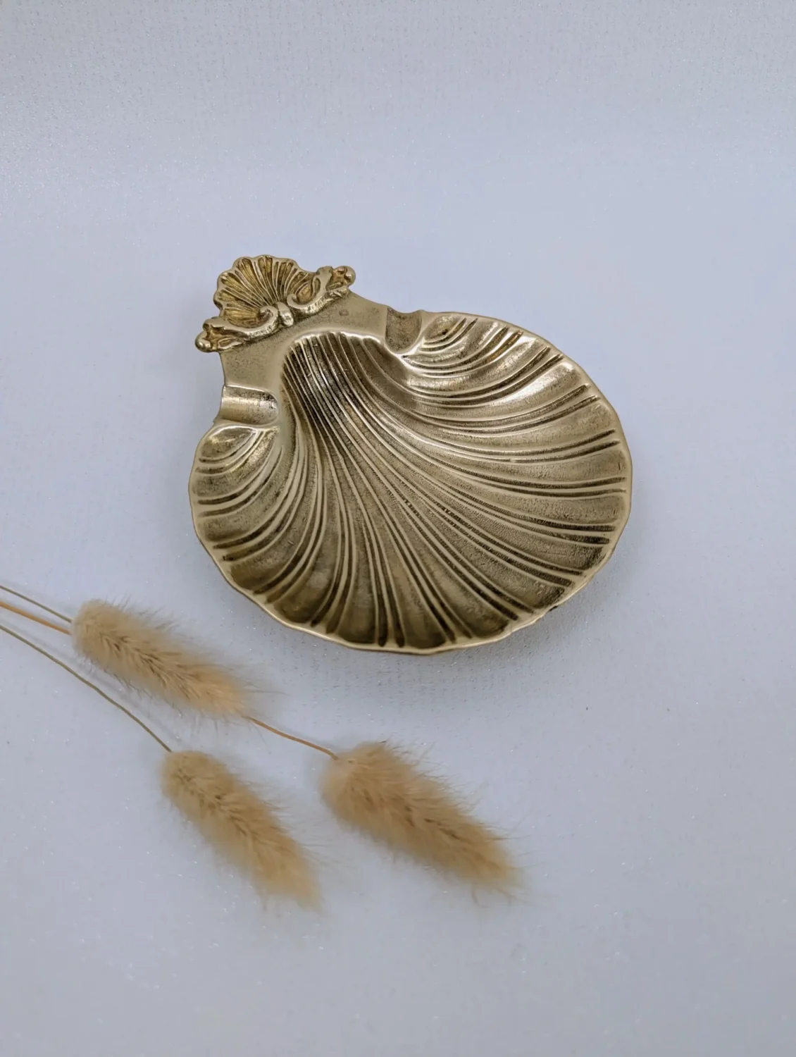 Charmante coupelle, cendrier, en forme de coquillage en laiton doré.