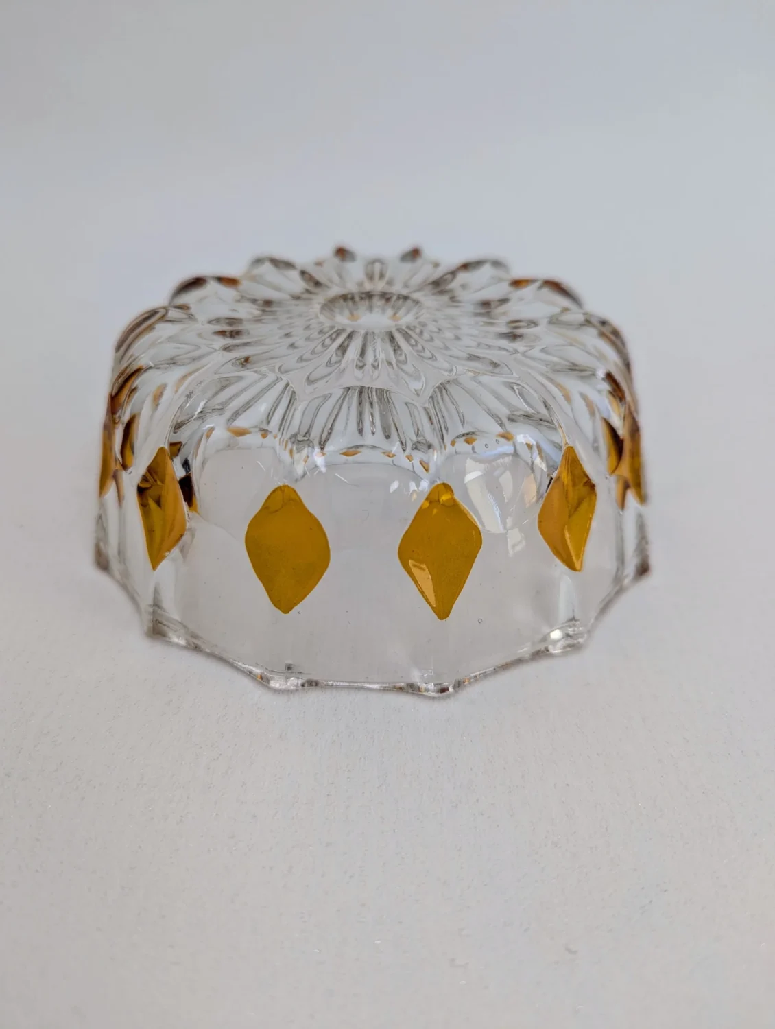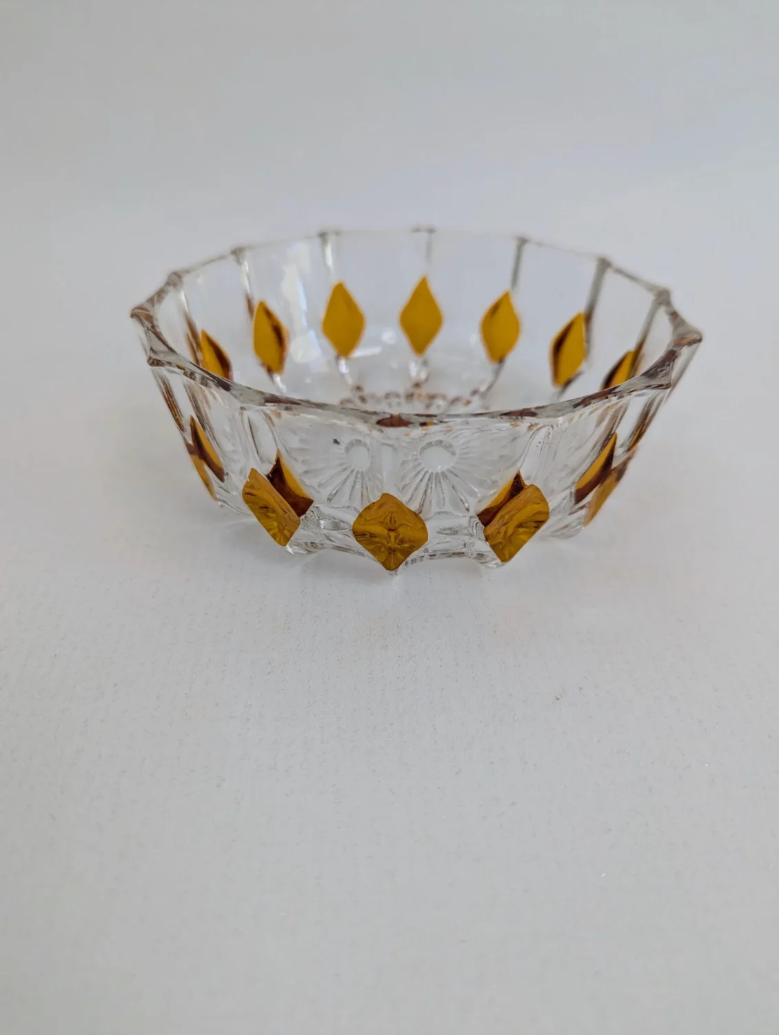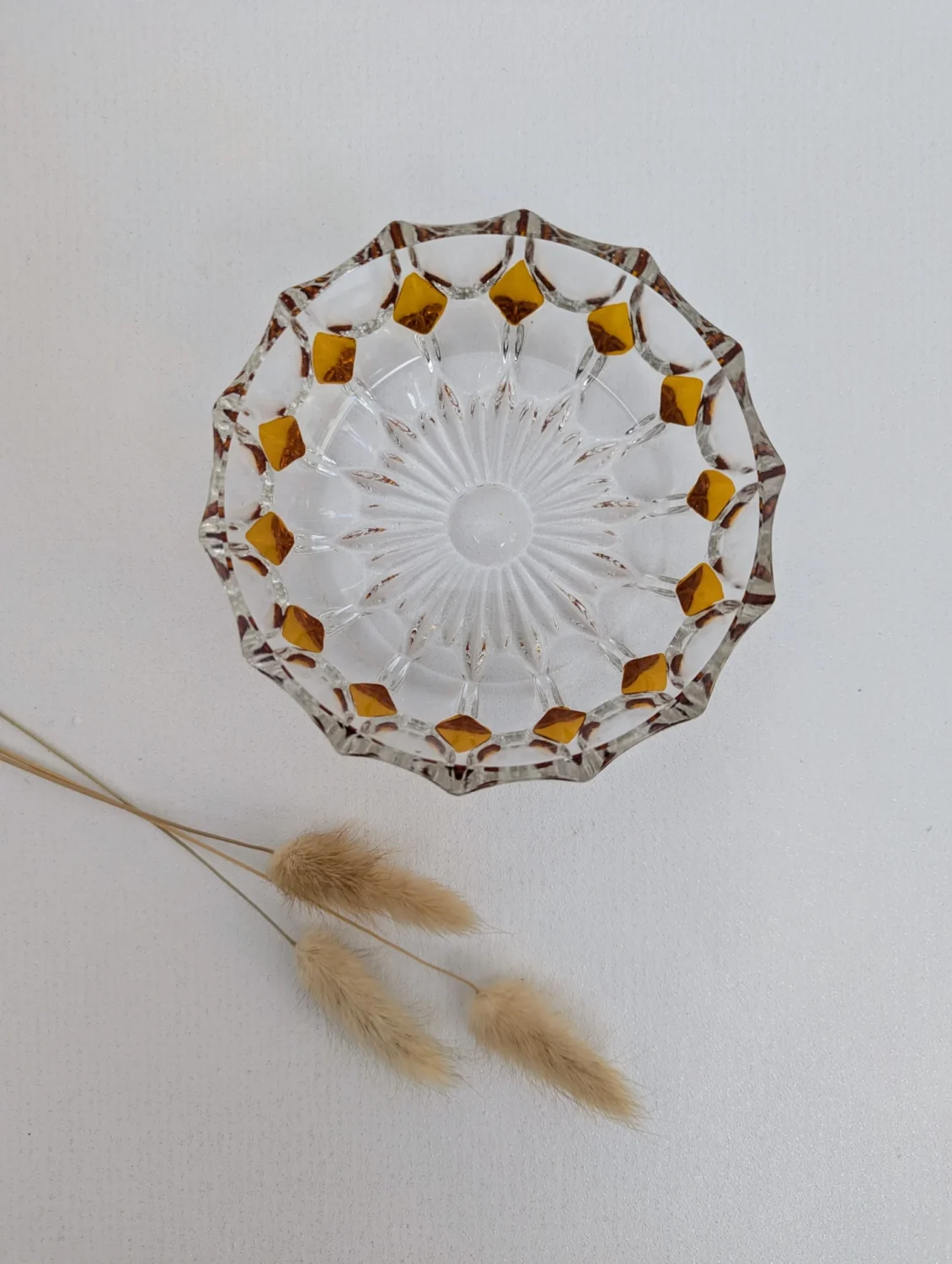 Coupelle en cristal vintage ambré à facettes : une pièce pleine de lumière