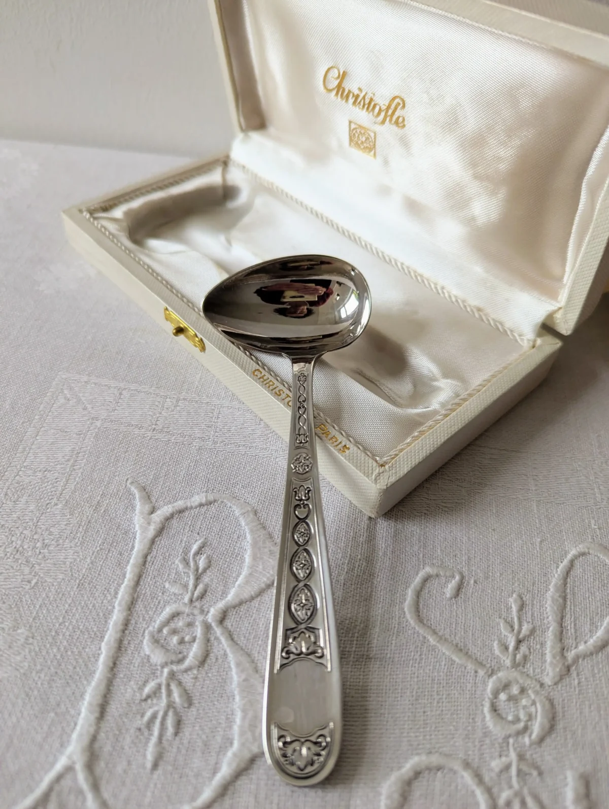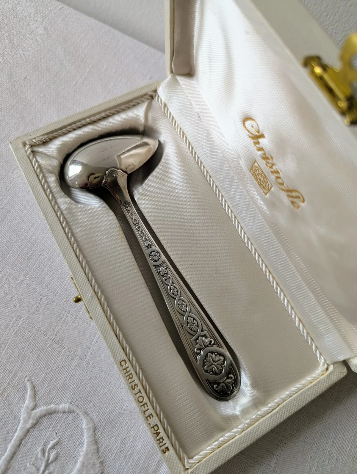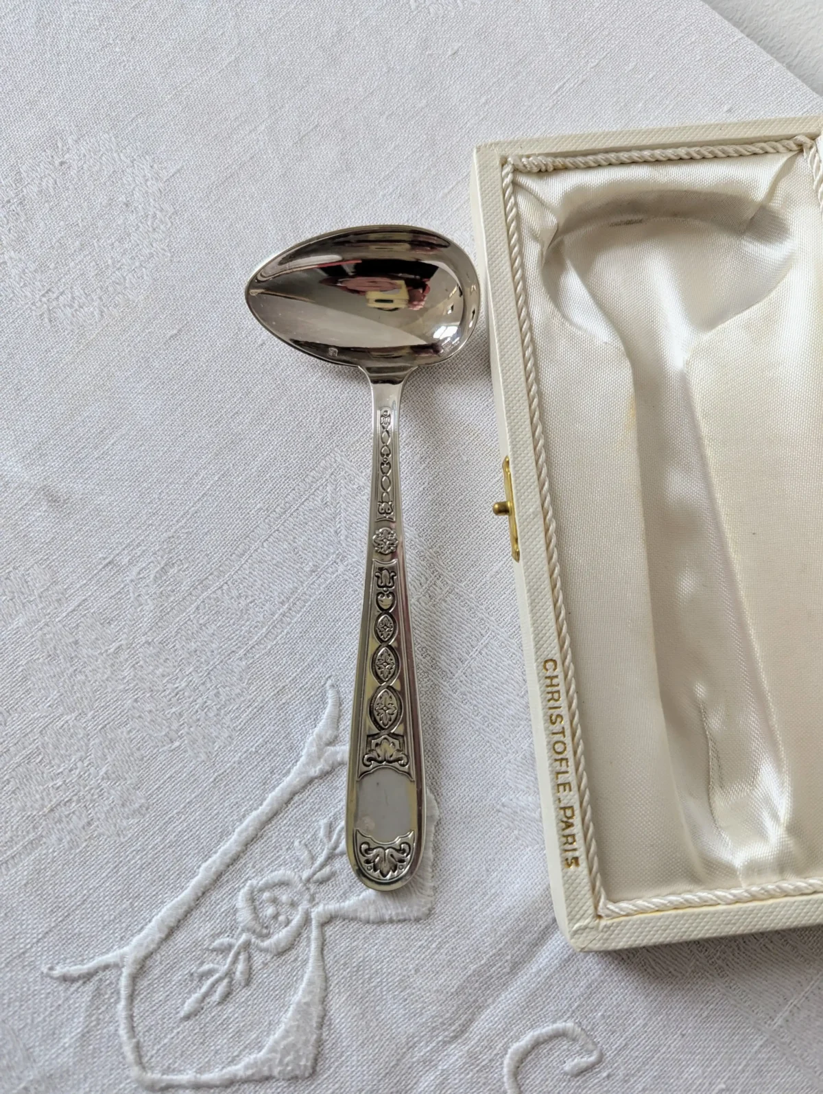 - Marque : Christofle Paris (poinçon visible au dos de la cuillère)