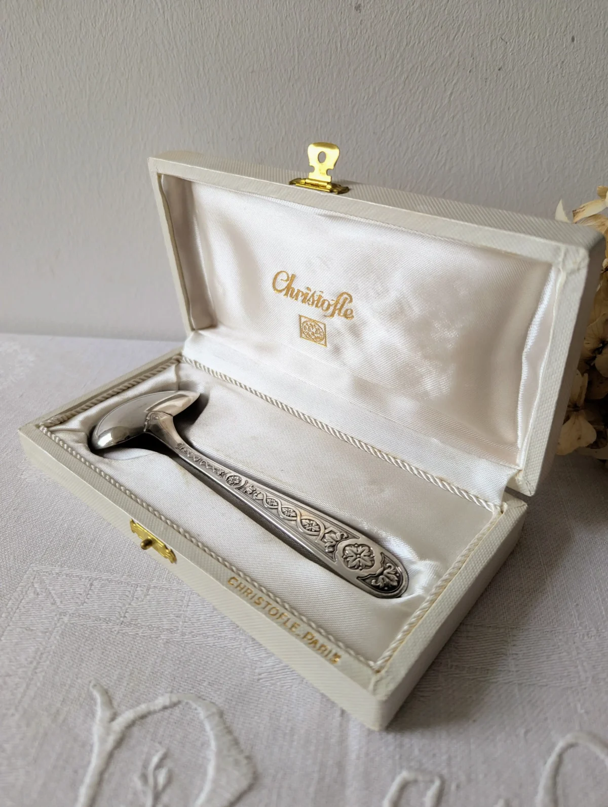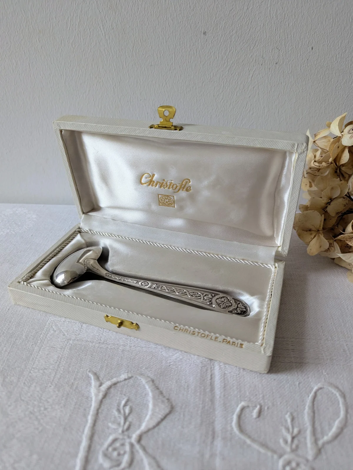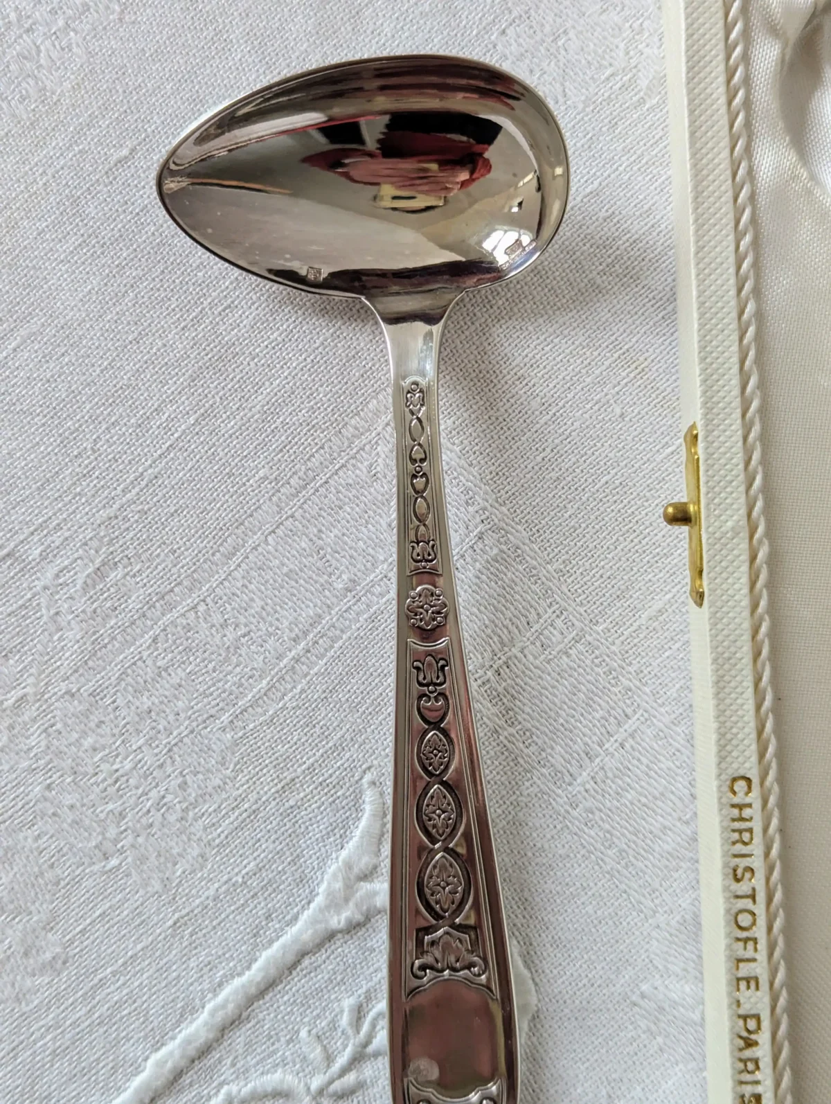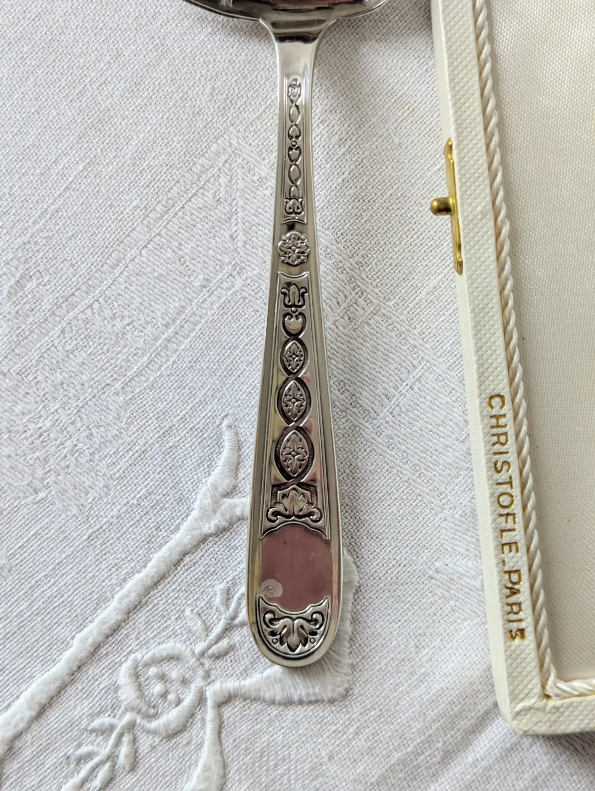 - Marque : Christofle Paris (poinçon visible au dos de la cuillère)