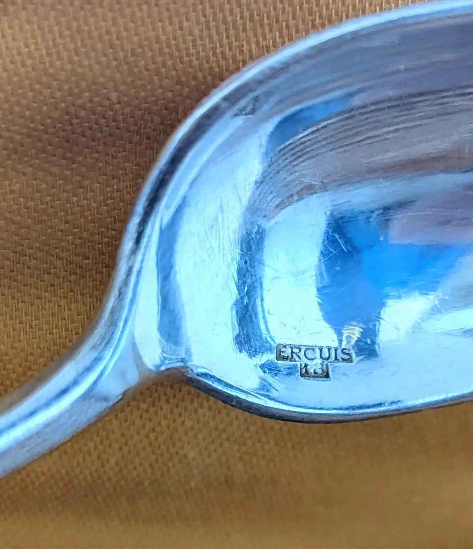 Chaque cuillère porte la signature Ercuis, maison française fondée en 1867 et reconnue pour son travail de l’argenterie. Ces cuillères à dessert de l’Orfèvrerie Ercuis représentent l’art de la table raffiné. Le métal argenté utilisé ici garantit une belle brillance et une résistance à l’usage quotidien.
