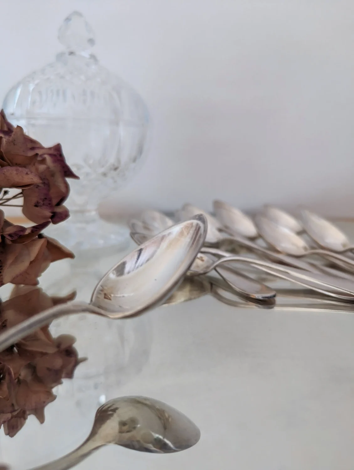 Des cuillères à dessert en métal argenté à la forme élégante et pratique