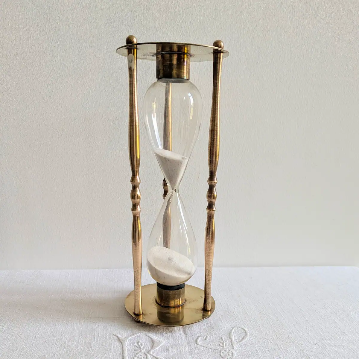 Pourquoi choisir ce grand sablier en laiton ancien pour votre décoration ?