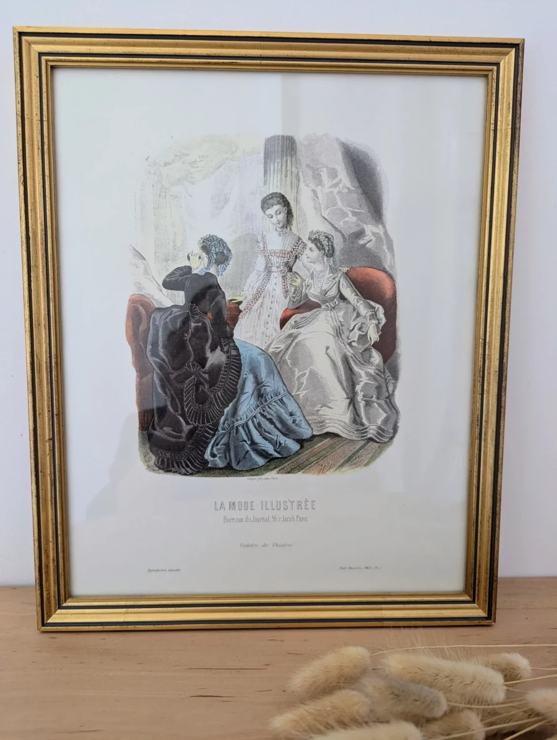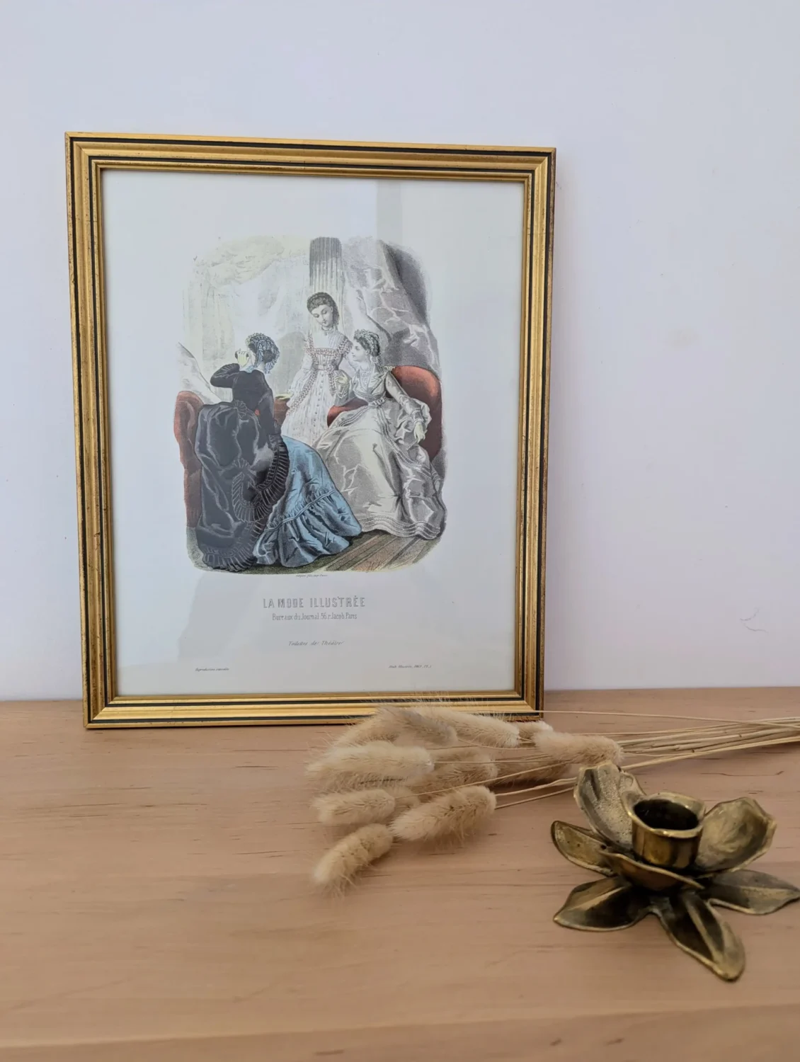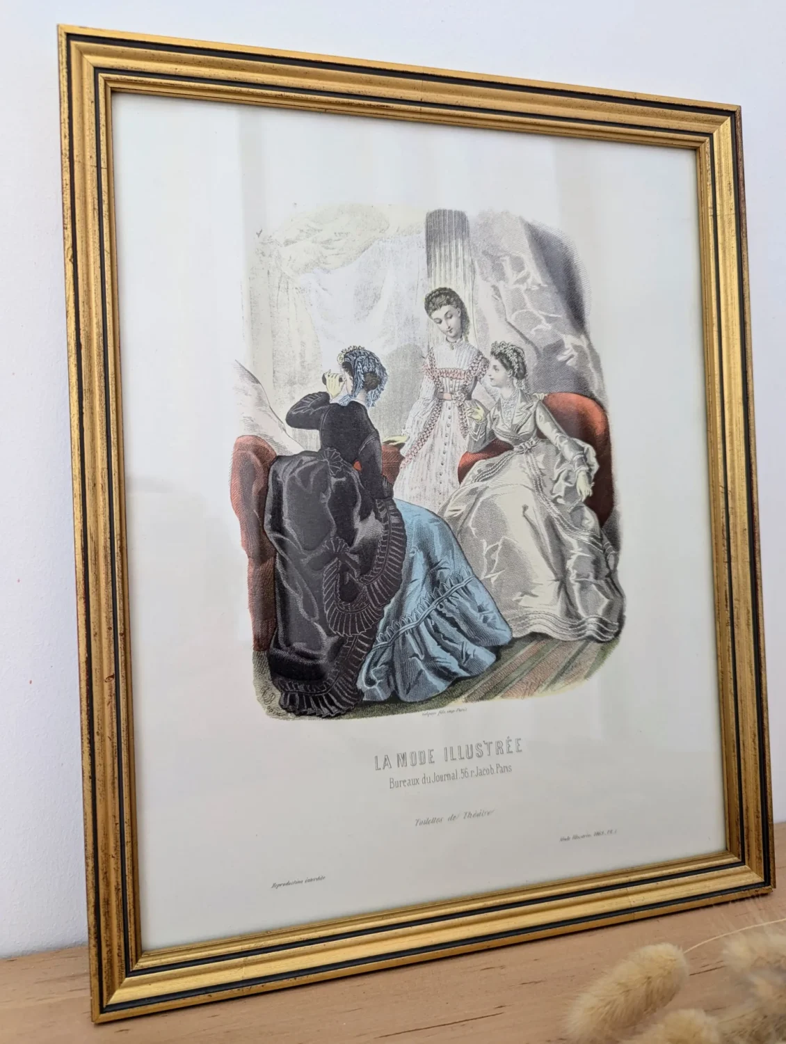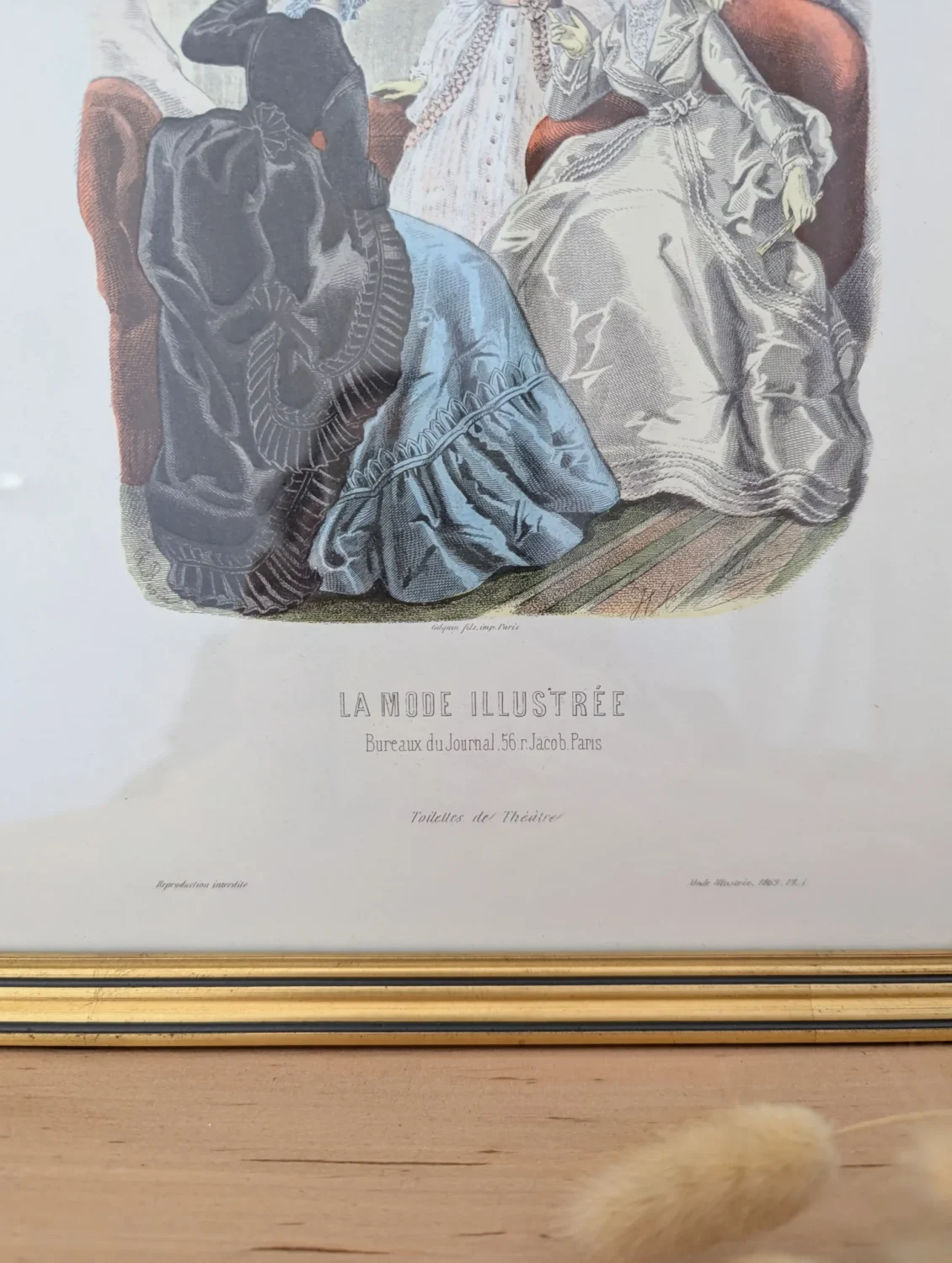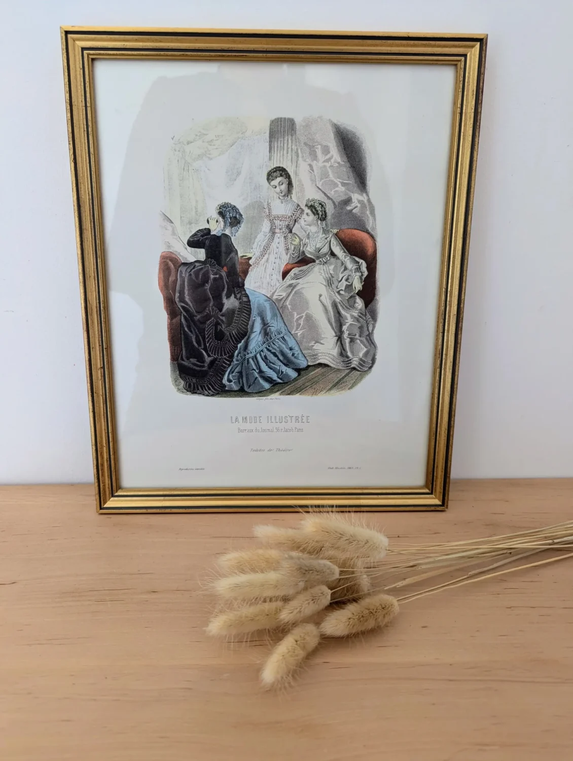 Élégance, histoire et raffinement s’invitent chez vous avec cette lithographie vintage de la mode illustrée, encadrée et pleine de charme.