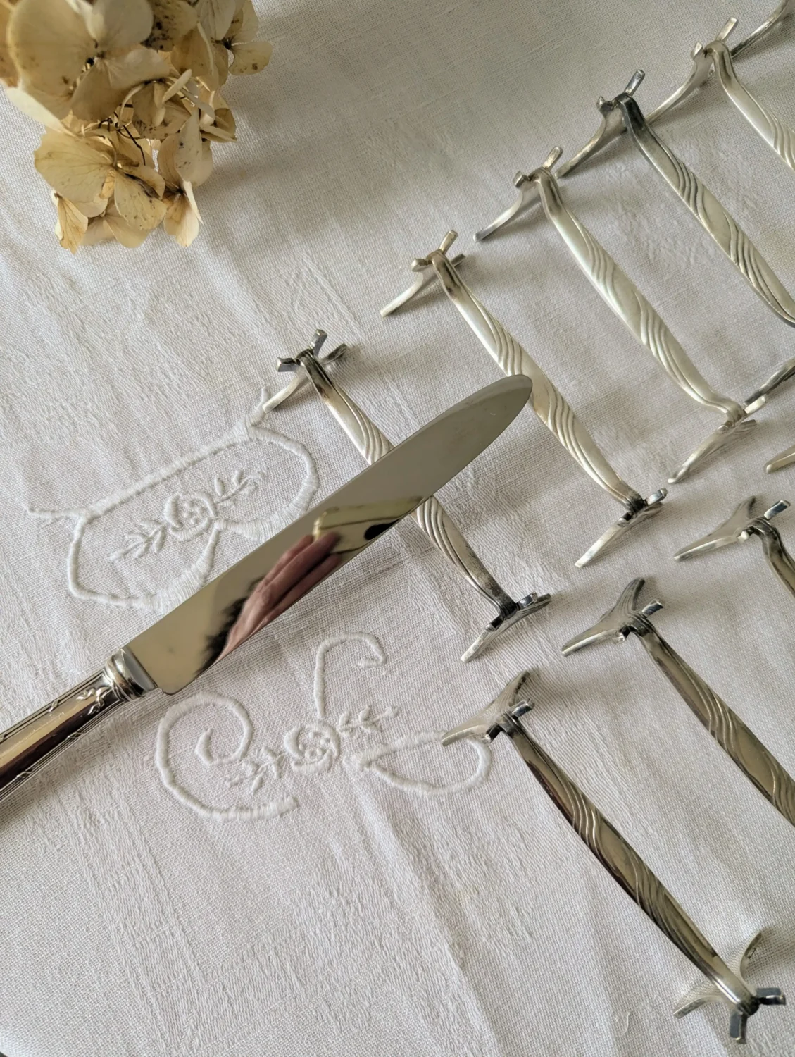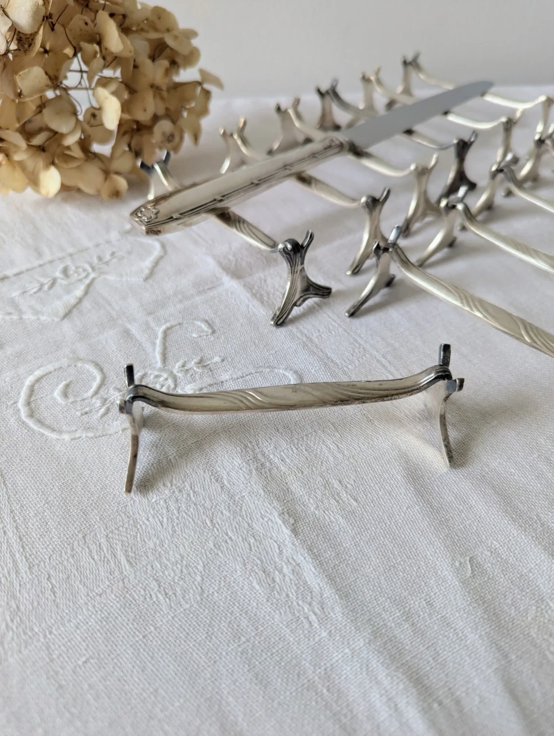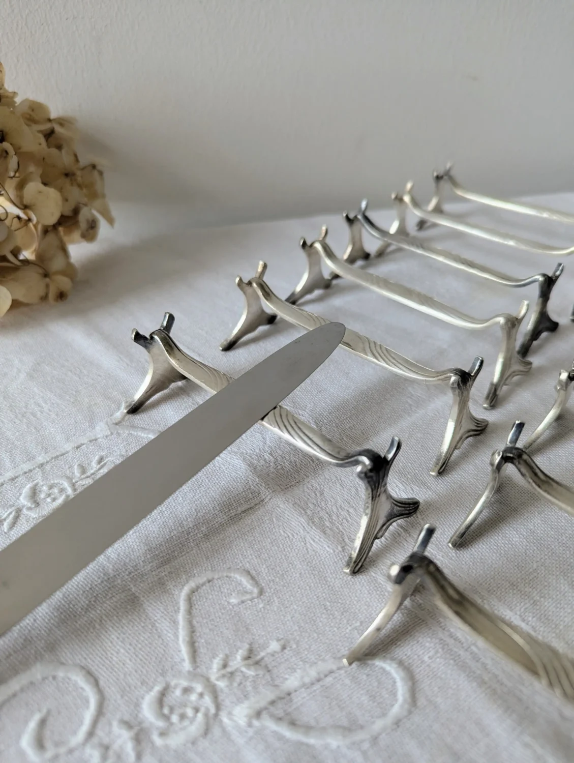 Placés sur une nappe en lin, aux côtés d’un couvert ancien, ces porte-couteaux deviennent de véritables œuvres. Ils sont à la croisée du design et du patrimoine.