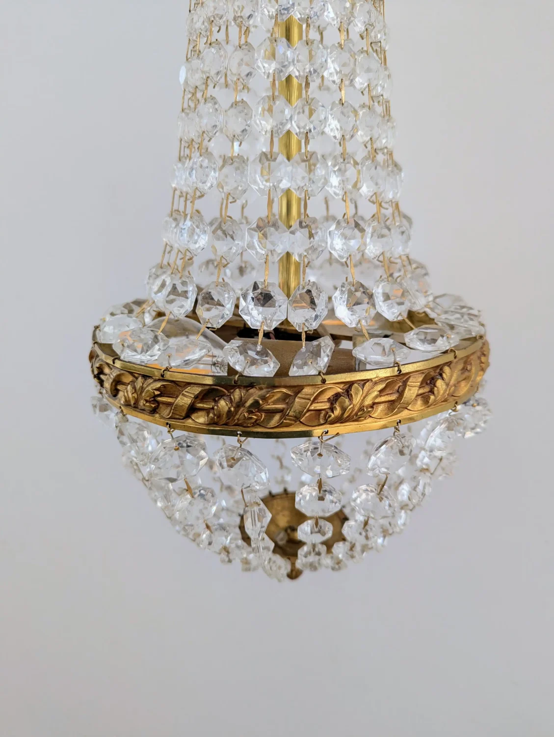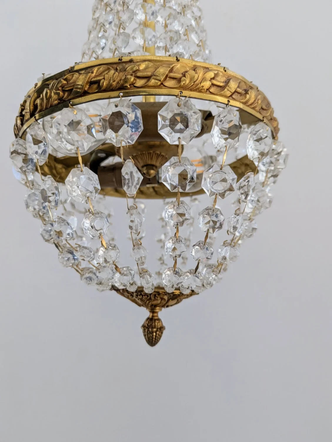 Il y a des objets que l’on croise un jour et que l’on n’oublie jamais. Ce lustre à pampilles montgolfière vintage, en est un. Suspendu dans une entrée, un couloir ou même une salle de bain, il évoque aussi une autre époque, où la lumière se diffusait doucement à travers le verre taillé et faisait danser les ombres sur les murs.