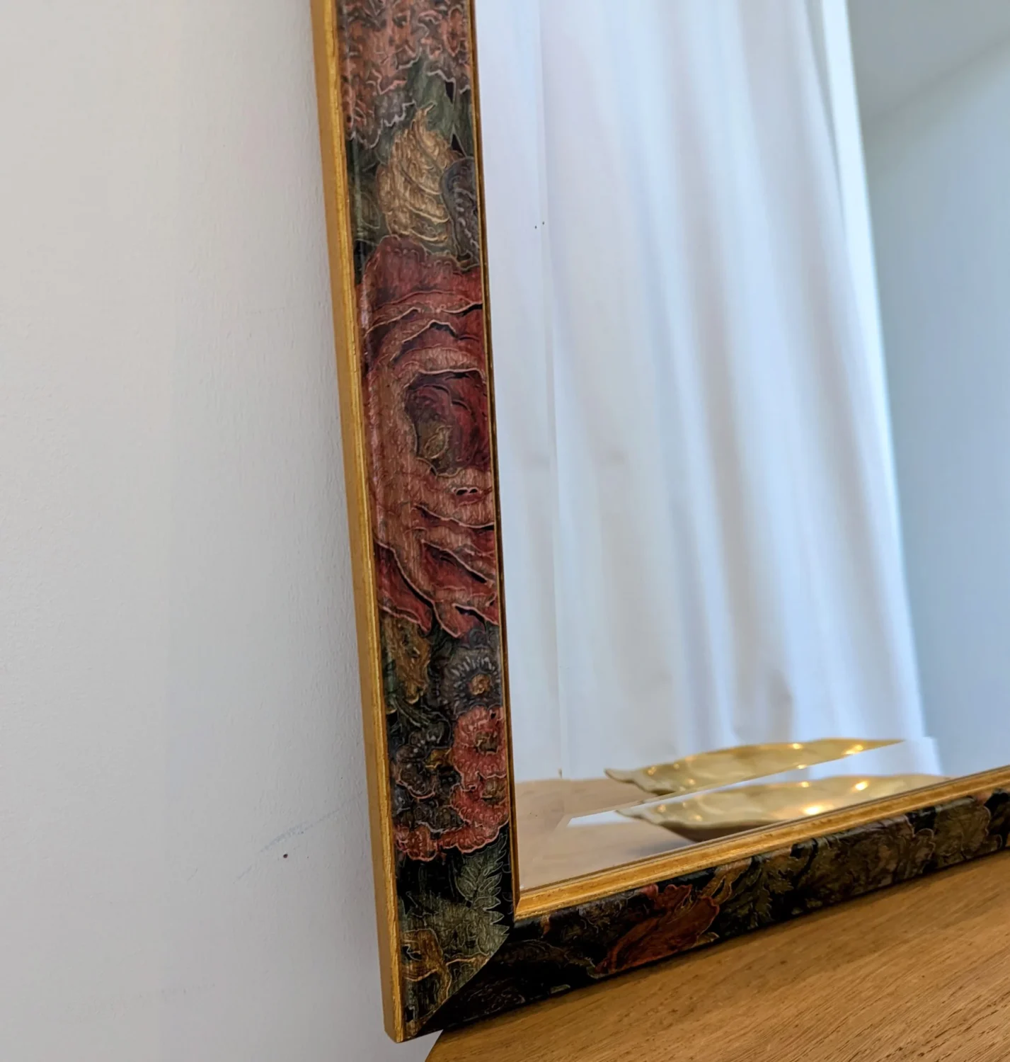 Miroir vintage bois imprimé fleurs – Le charme rétro des années 80