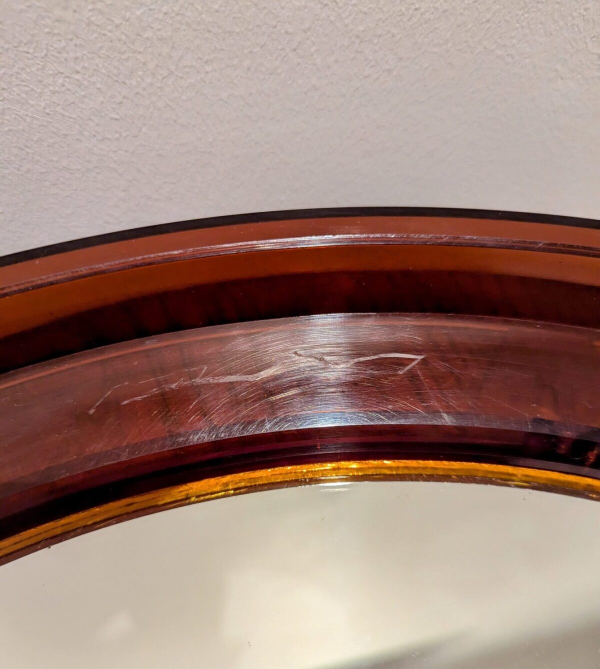 Miroir Rond Vintage en Plexi Orange Transparent – Design 80’s et Look Rétro