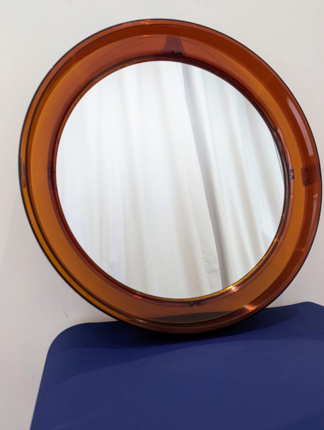 • Miroir rond vintage en plexiglas orange transparent, design des années 80