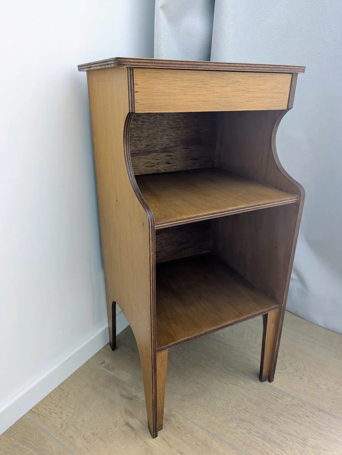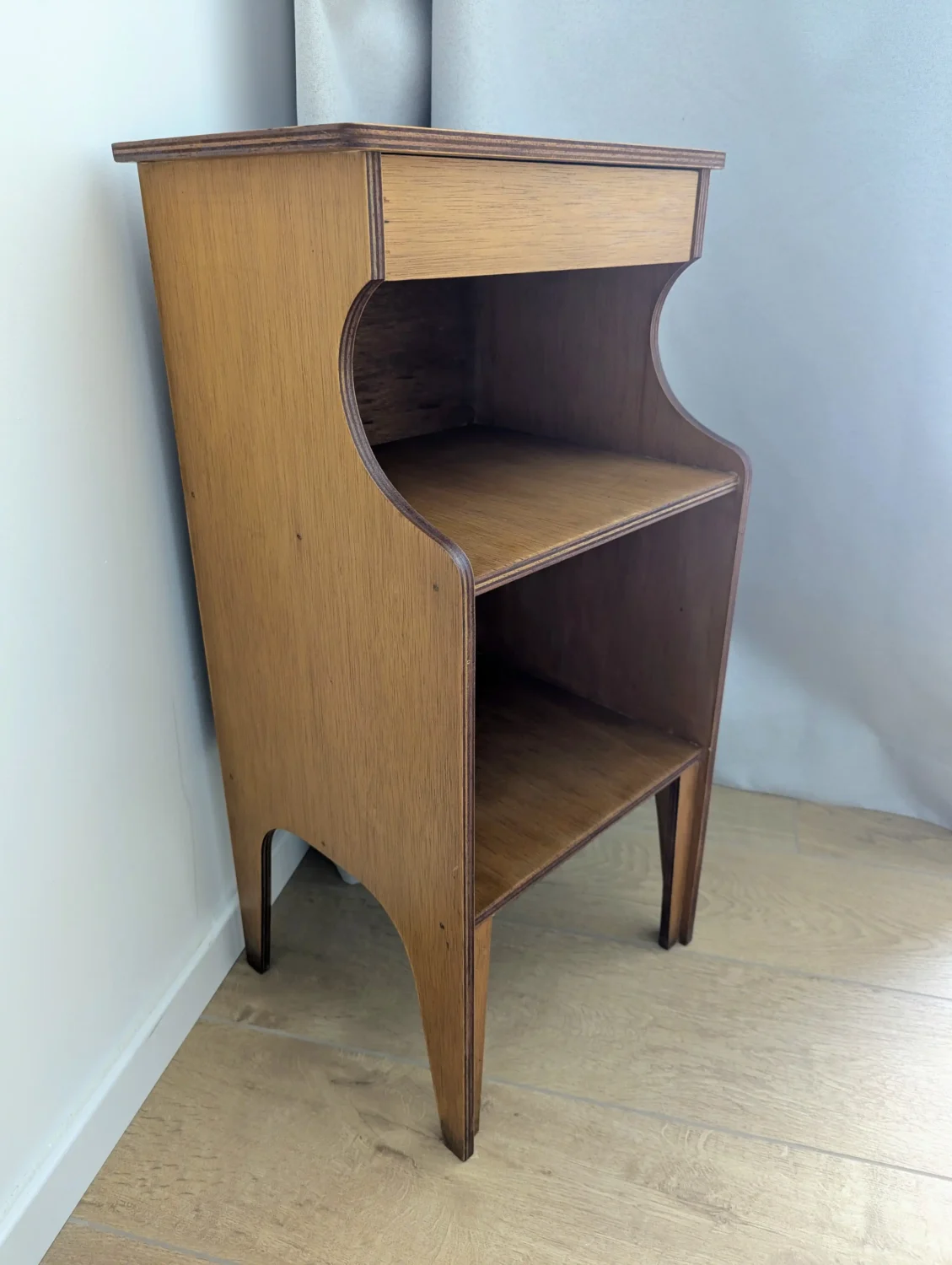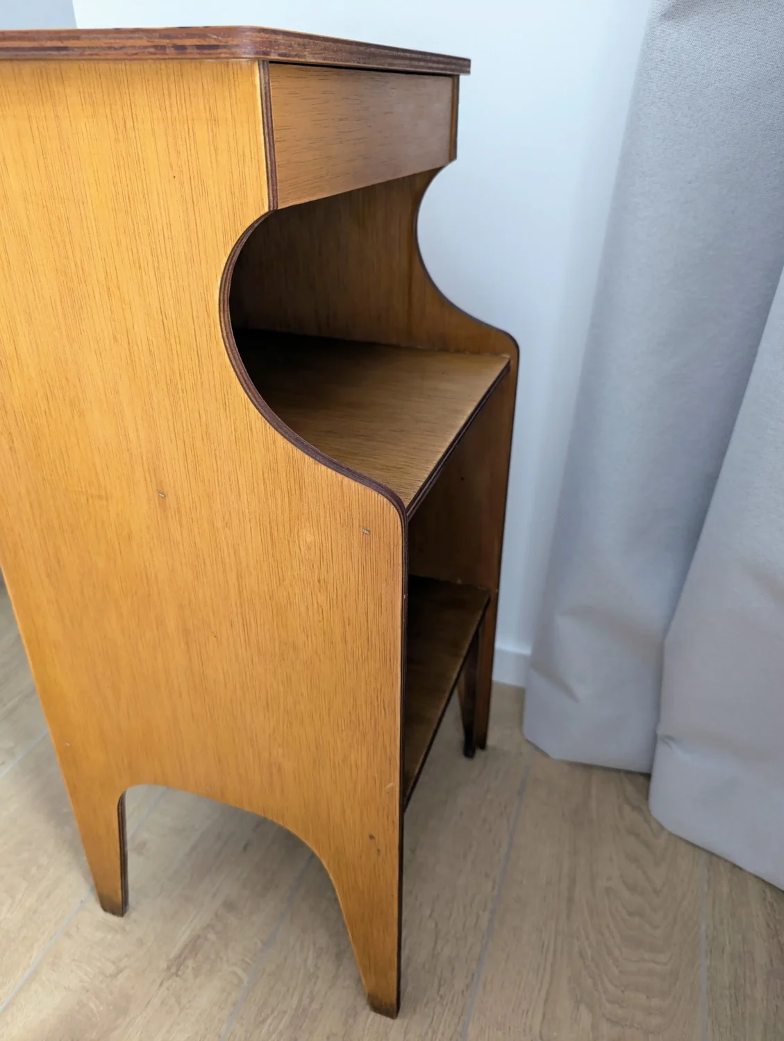 - Matière : placage bois verni, contreplaqué cintré