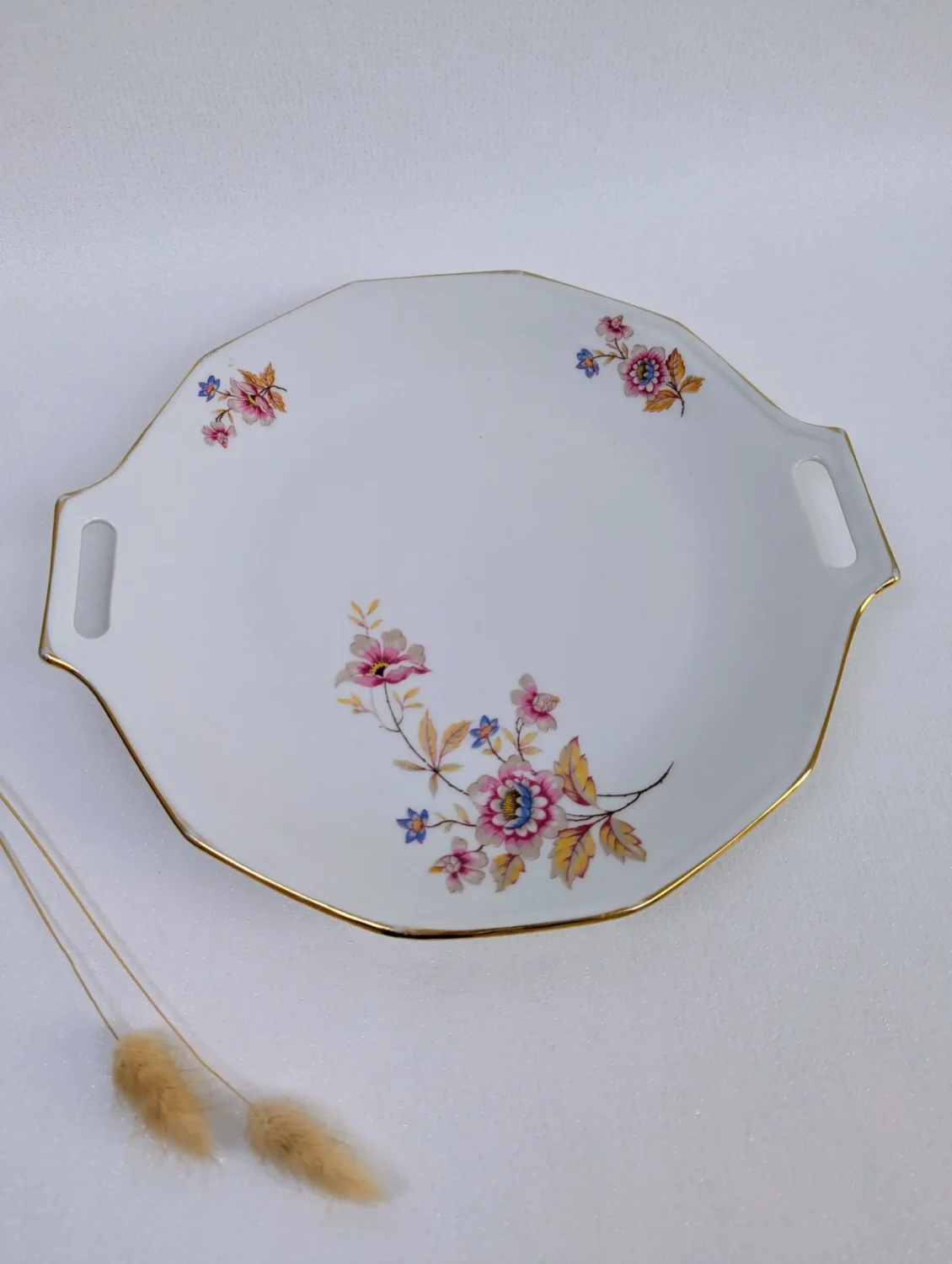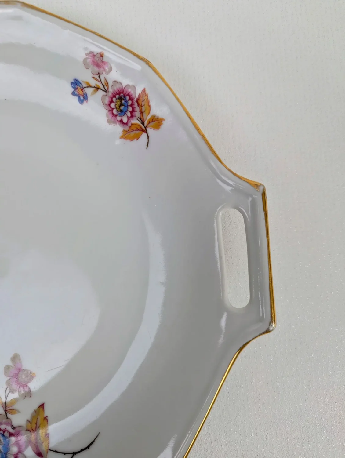 Plat Dessert Limoges fleuri doré P.F.C | Déco Vintage