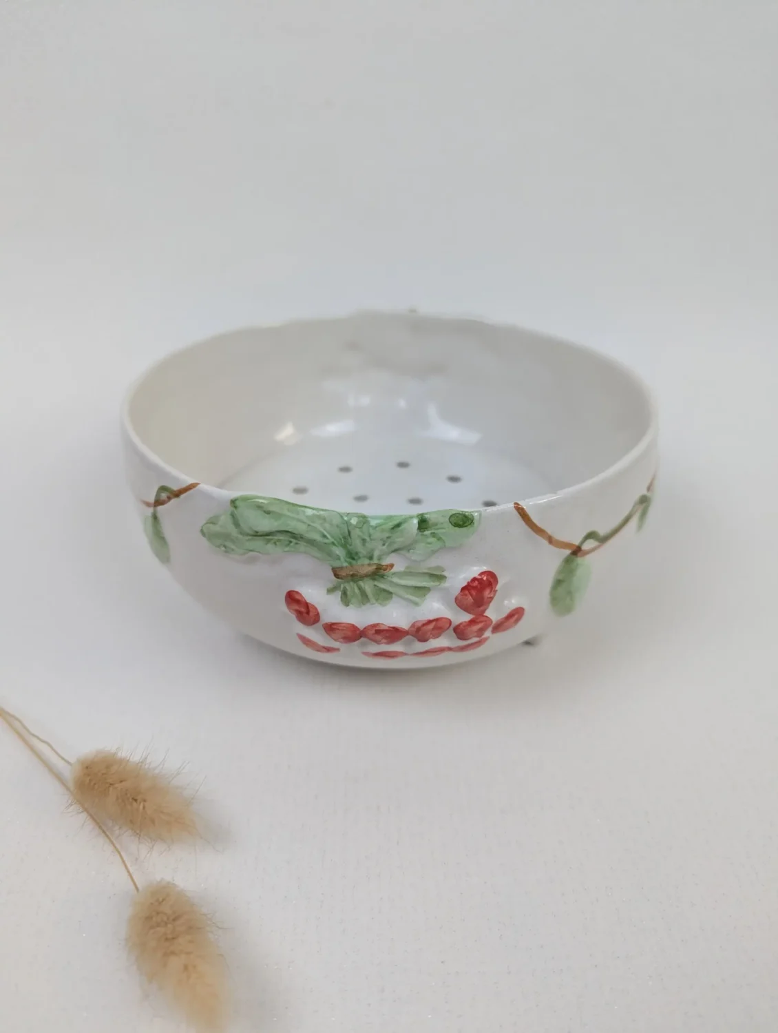 On apprécie particulièrement la générosité de sa forme, qui en fait une pièce pratique tout en étant visuellement intéressante. Grâce à son égouttoir amovible intégré, ce plat peut être utilisé au quotidien pour laver et présenter vos radis, tout en servant d’élément décoratif dans une cuisine ou une salle à manger.