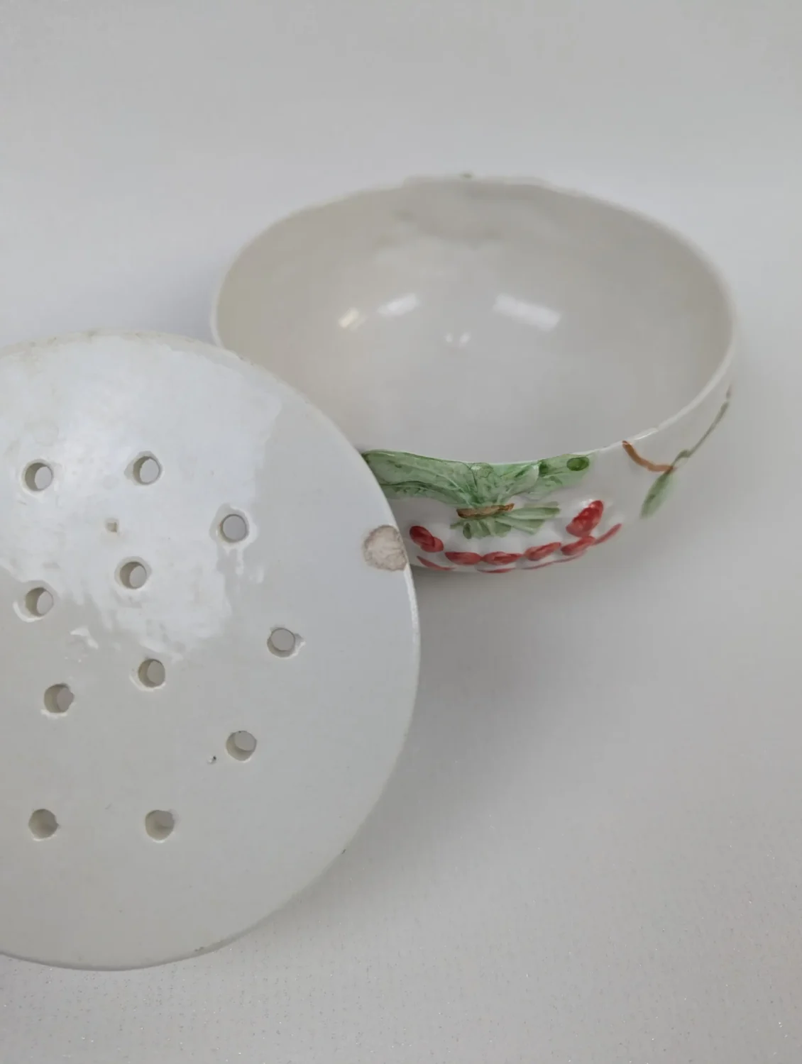 Ce plat est en bel état d’usage, ce qui confirme sa qualité de fabrication et son entretien soigné au fil du temps. On note un petit impact sur l’égouttoir amovible, situé sur le côté et non visible selon l’angle de présentation, ce qui ne nuit ni à sa solidité ni à son esthétisme général.