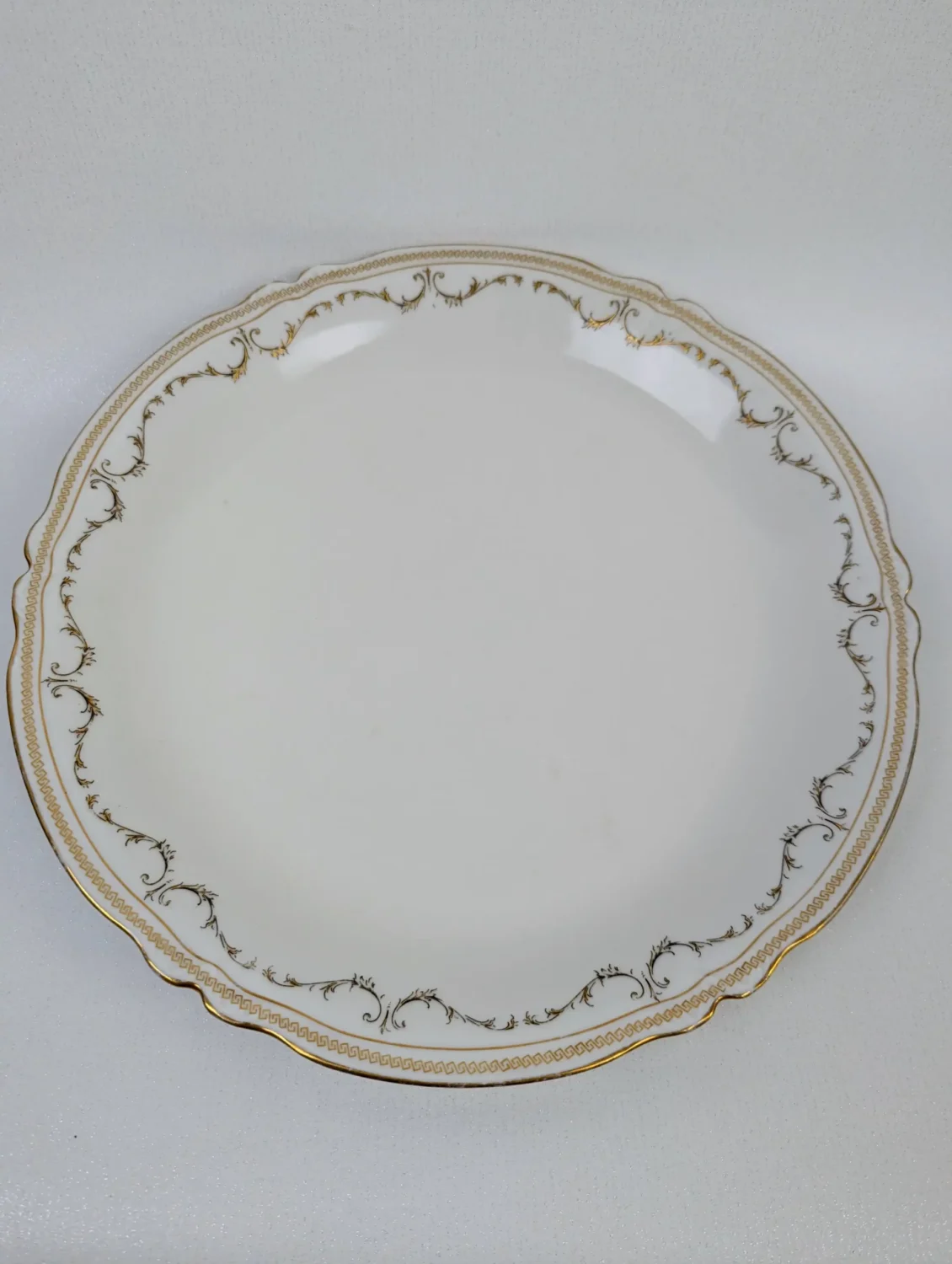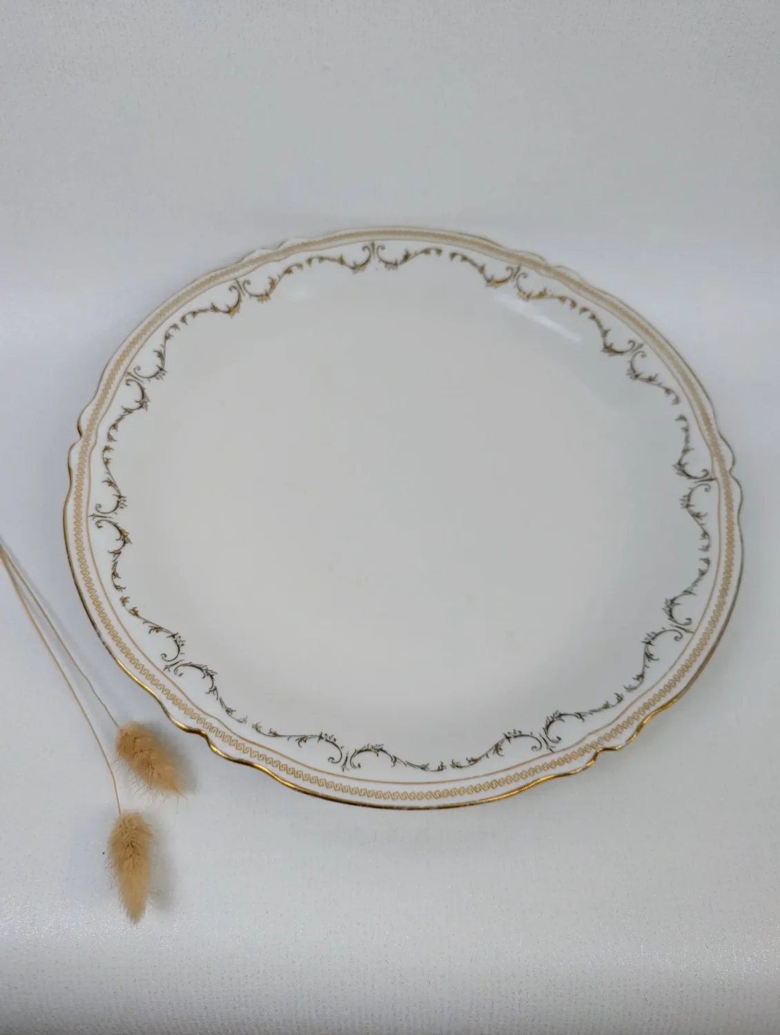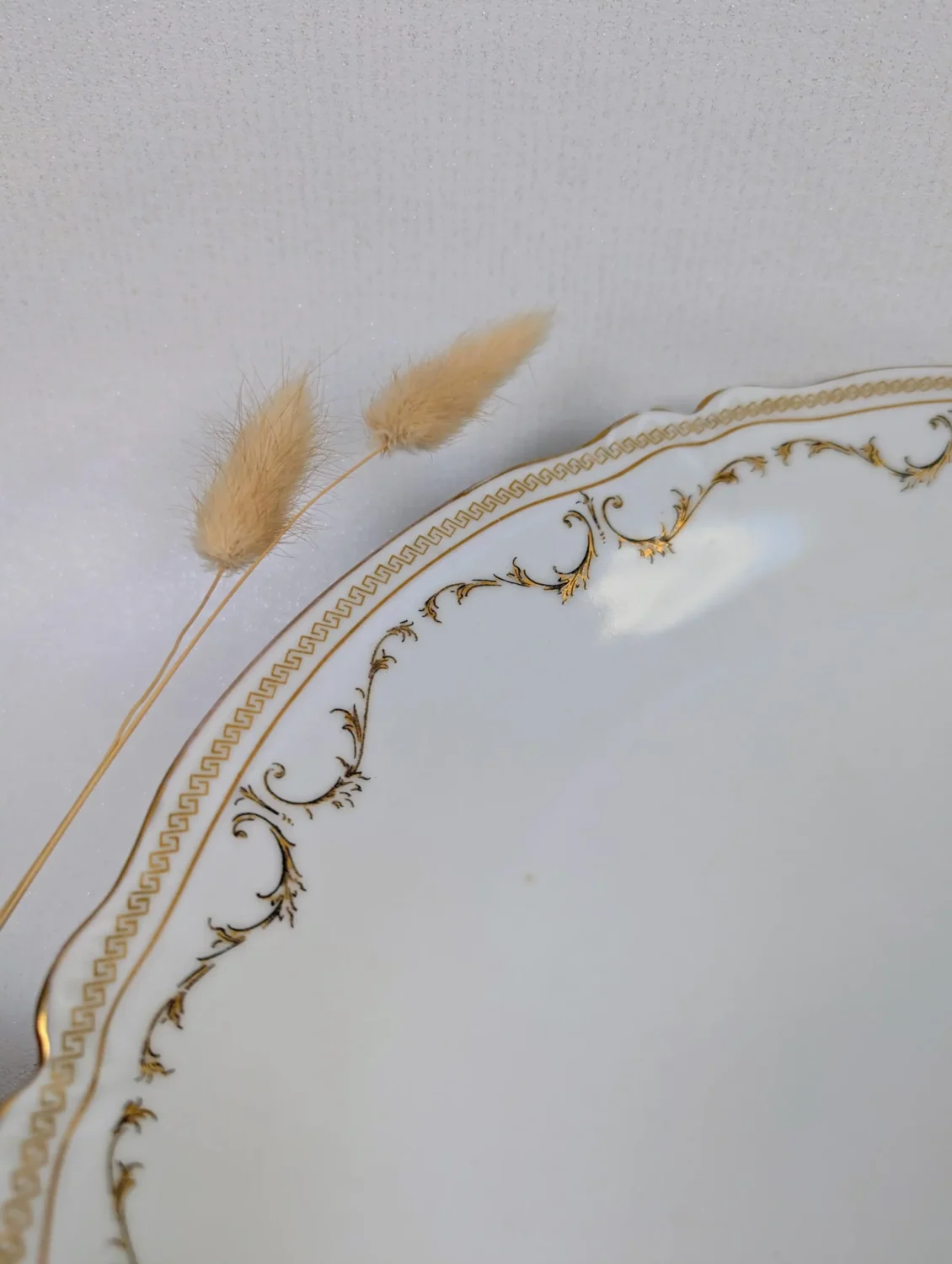 Ce plat en porcelaine de Limoges doré signé B&Cie Limoges France est une pièce de service aussi élégante qu’authentique. Dès le premier regard, on est séduit par sa forme harmonieuse, ses contours finement travaillés en volutes, et ses détails dorés délicats qui apportent une véritable touche de raffinement.