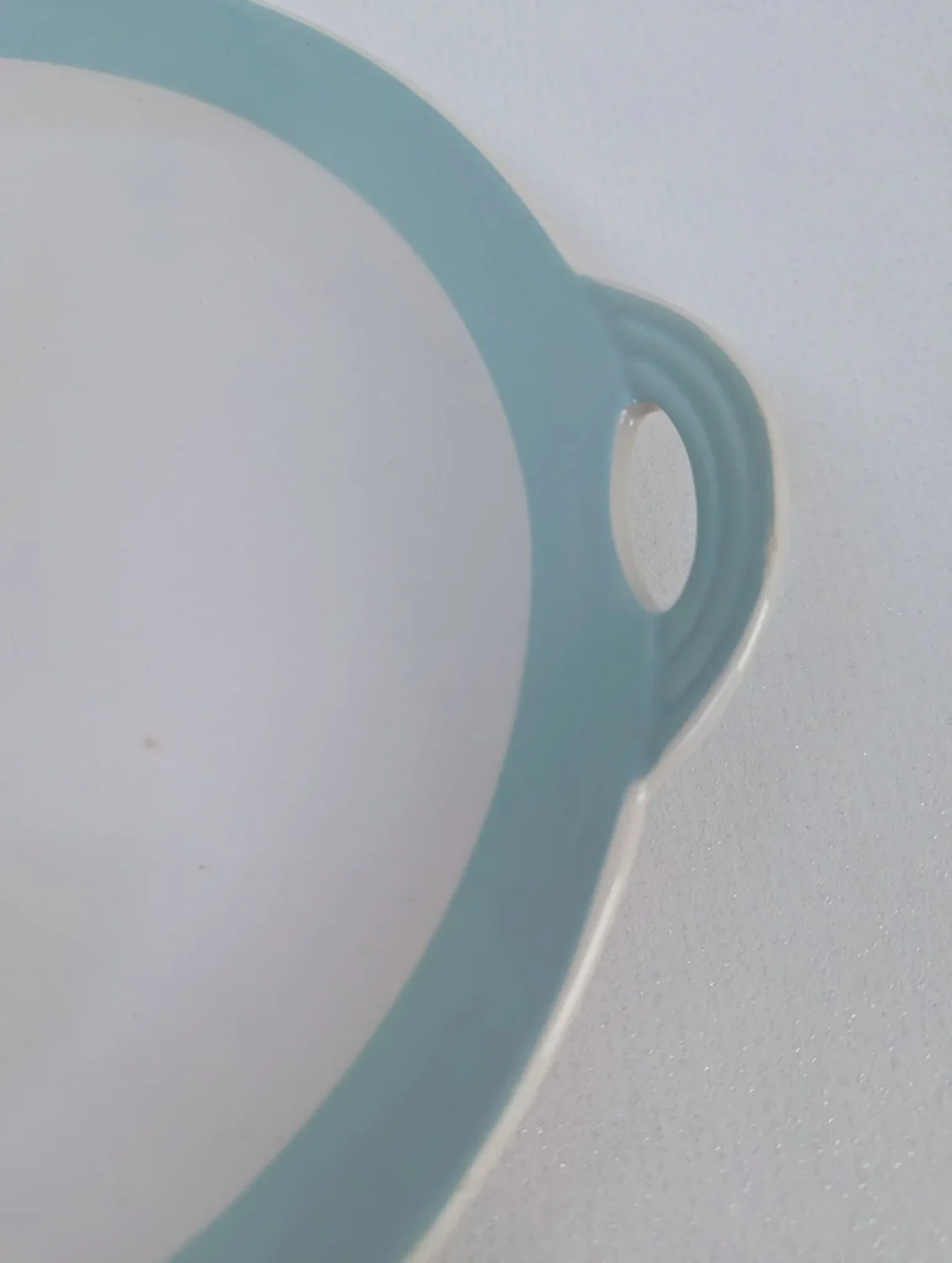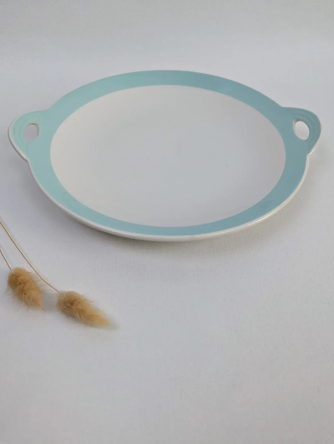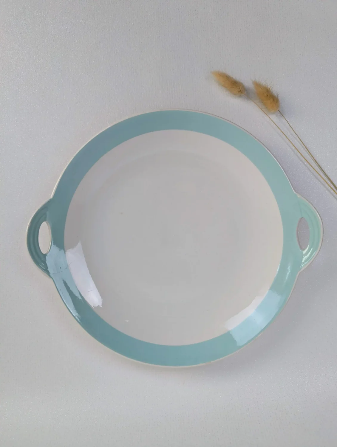 Un plat tarte vert d’eau au design épuré, typique des belles pièces anciennes