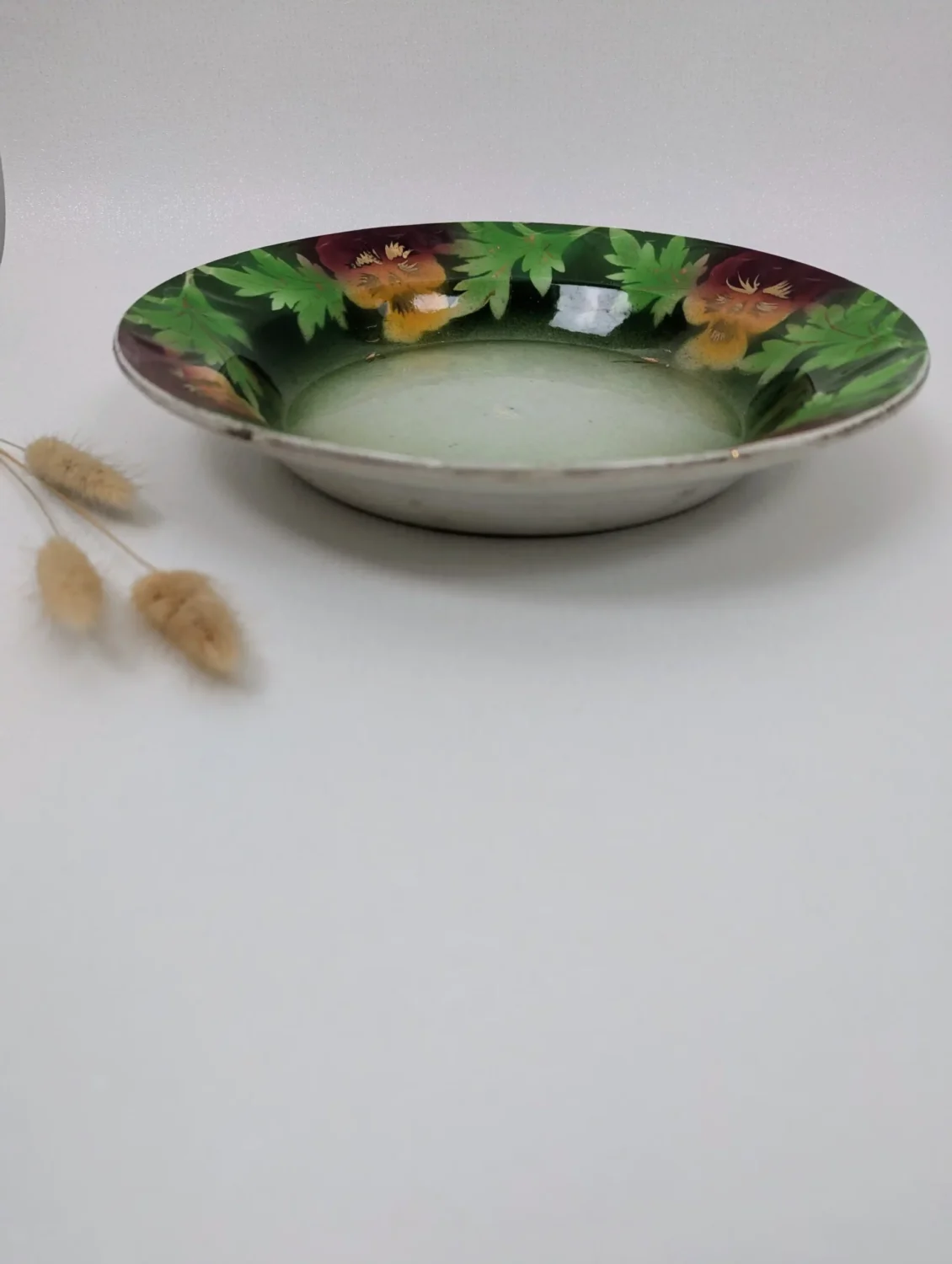 On aime ses couleurs chatoyantes, ses détails de dorures. Un plat ancien de 26 cm de diamètre qui apportera charme et élégance à votre table.