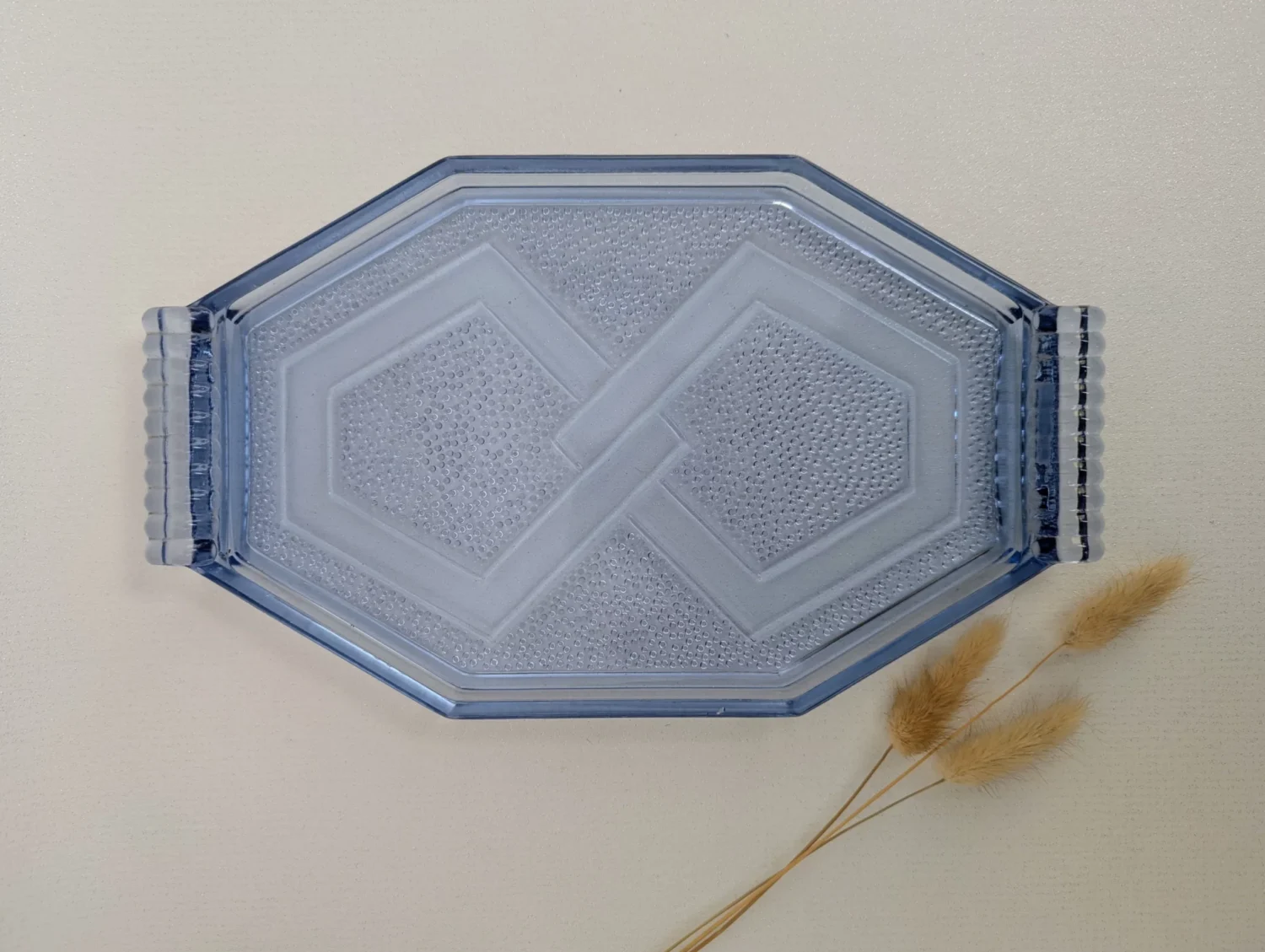 Plateau Art Déco vintage en verre bleu ciel : une pièce vintage qui allie élégance et fonctionnalité