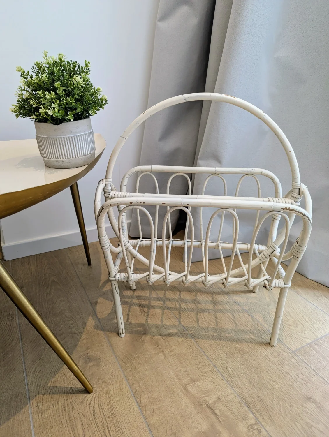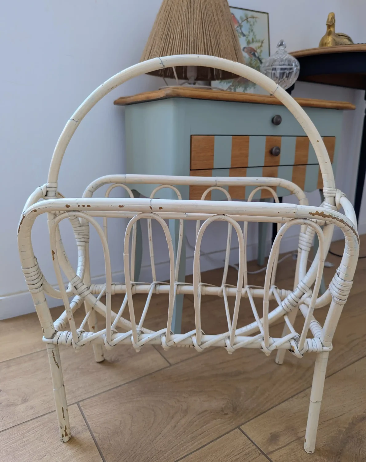 Un porte revue rotin fonctionnel et décoratif, parfait pour une déco vintage chic