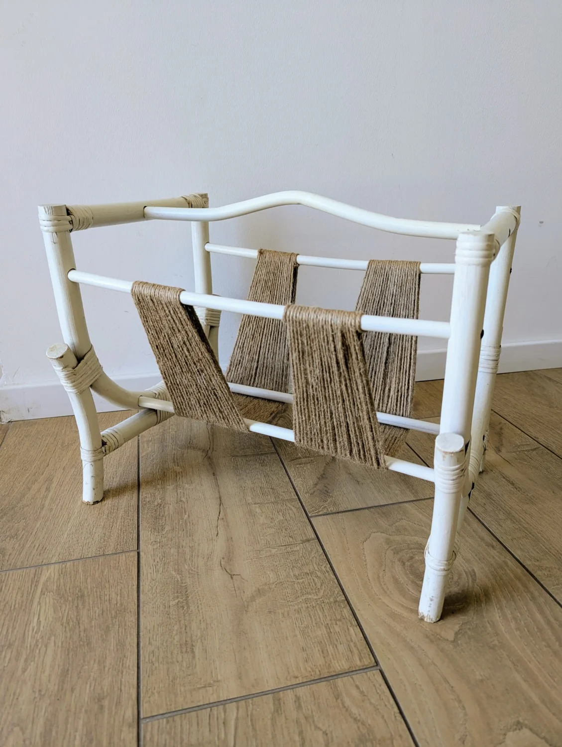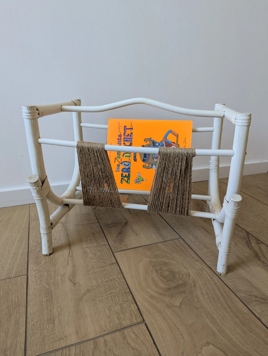 Porte-revues vintage blanc upcyclé : esprit bohème et fibre responsable