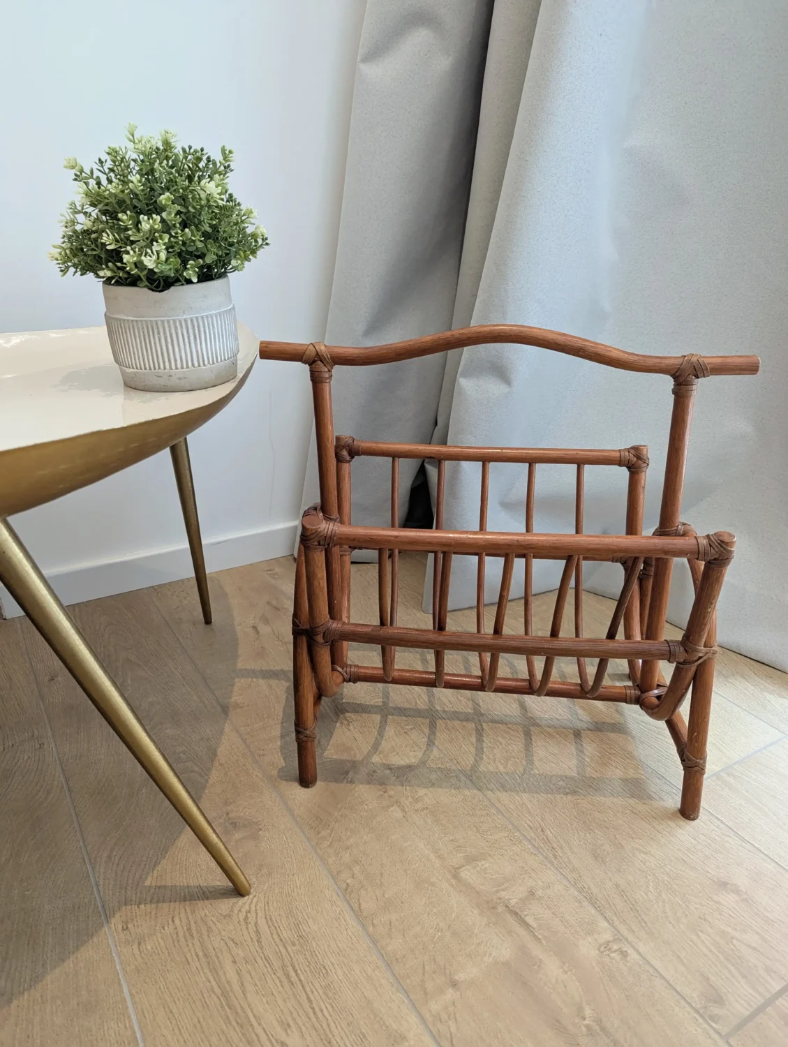 De plus, sa structure en rotin massif garantit une stabilité optimale tout en conservant une belle légèreté visuelle. Ainsi, vous pouvez y glisser facilement vos magazines, journaux ou livres, que ce soit près d’un canapé, dans une chambre ou même dans un bureau.