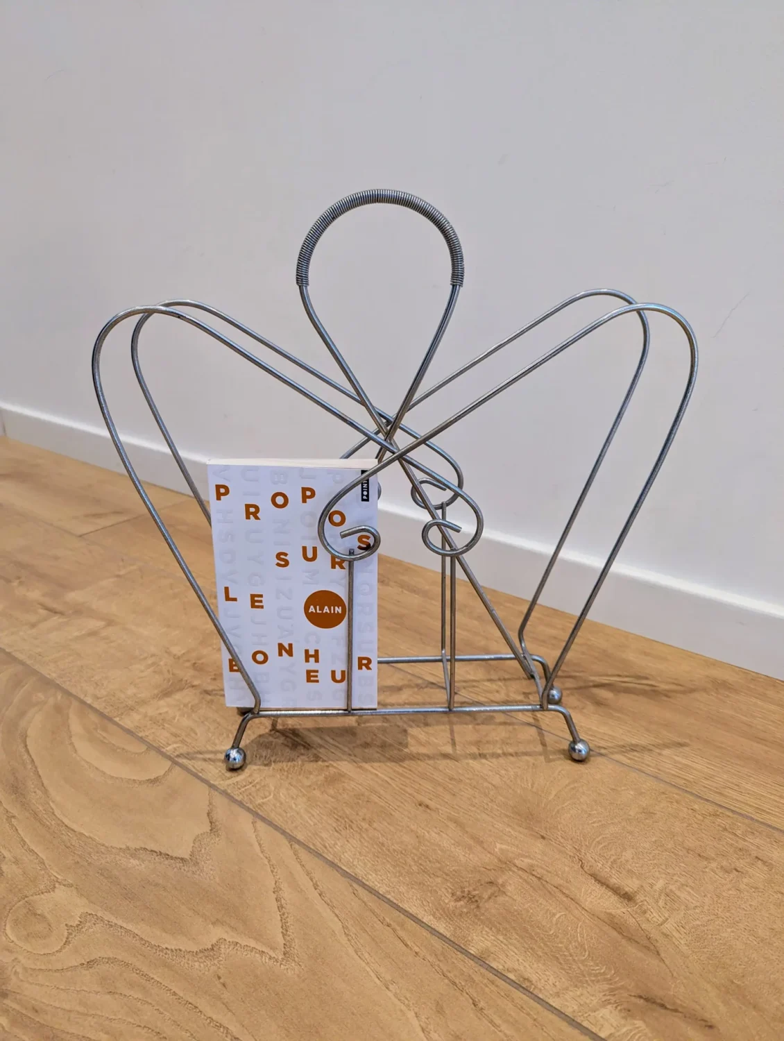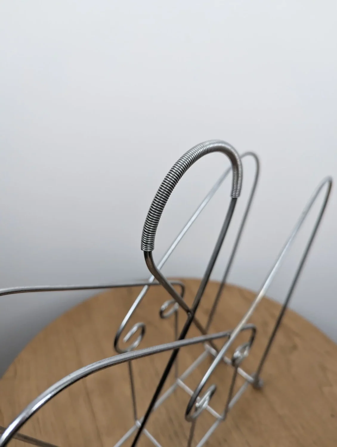 Un porte-revues vinyles en métal design emblématique du milieu du XXe siècle