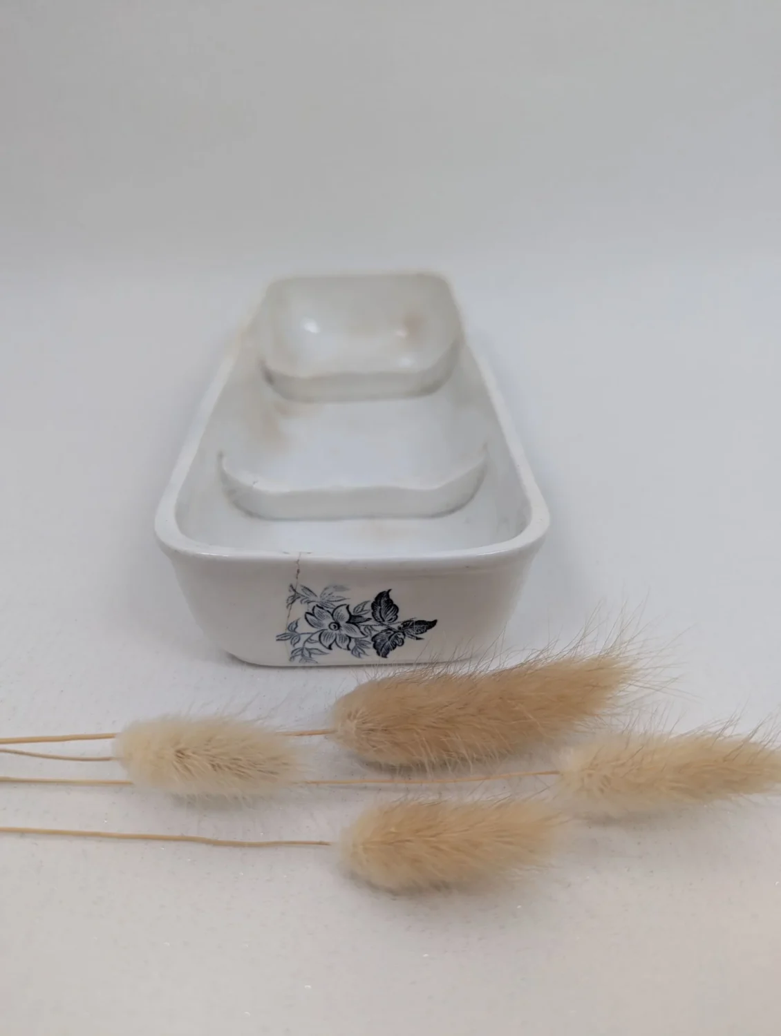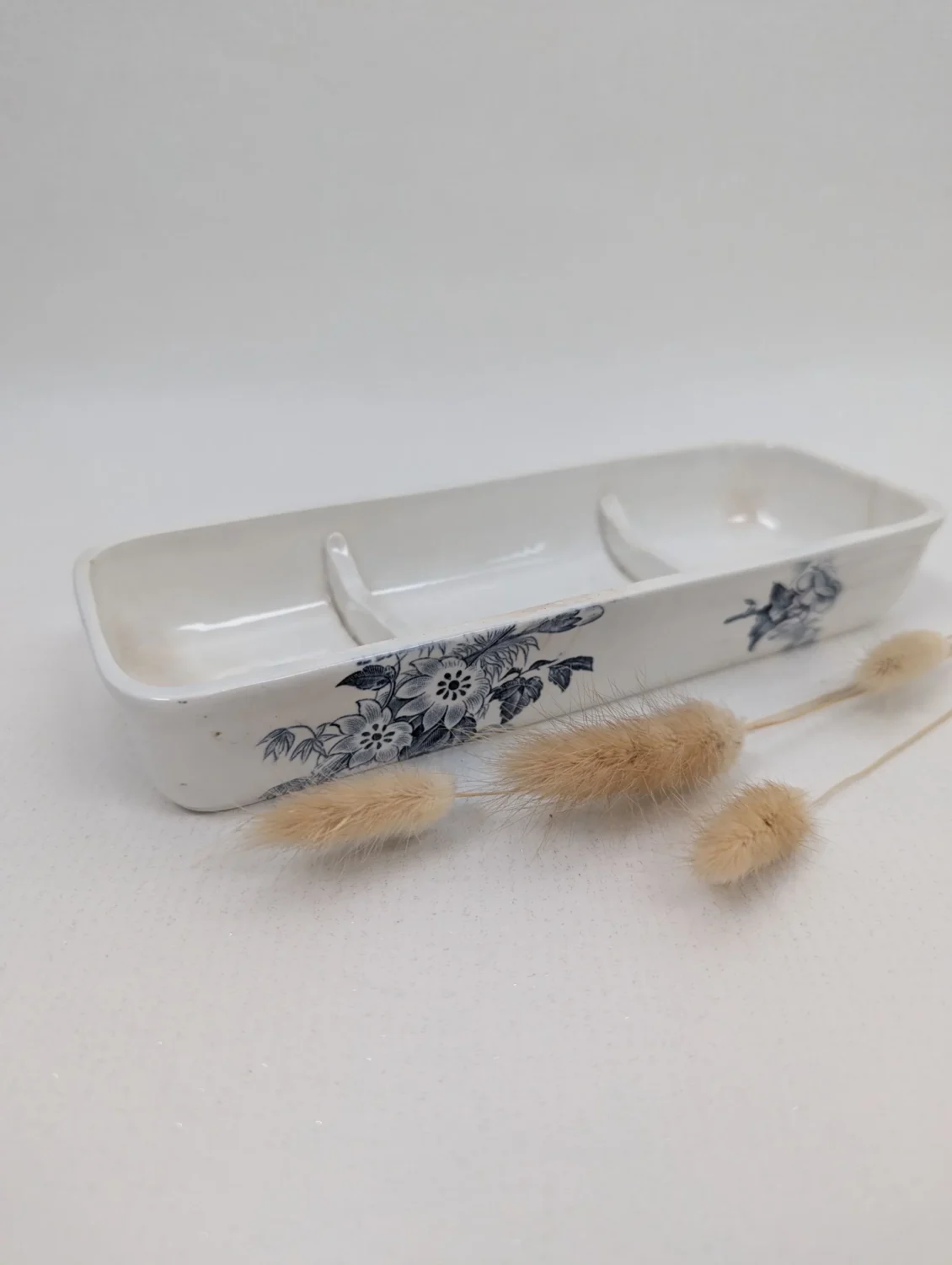 Chaque détail de ce porte-savon ancien évoque l’art de vivre d’autrefois. Ses motifs floraux sont peints avec une grande finesse, et la faïence présente une belle patine du temps. Une petite fêlure, visible mais non fragilisante, rappelle qu’il s’agit d’une véritable pièce ancienne.