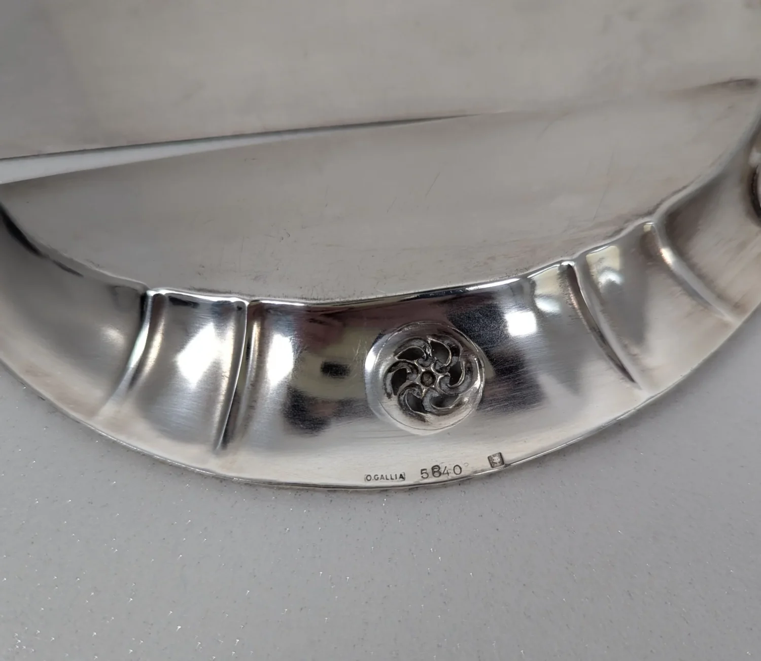 Le métal argenté de qualité supérieure assure à ce service un éclat discret mais toujours chic. Chaque pièce est estampillée et numérotée, signe de son authenticité et de son appartenance à la prestigieuse collection Gallia – Christofle.