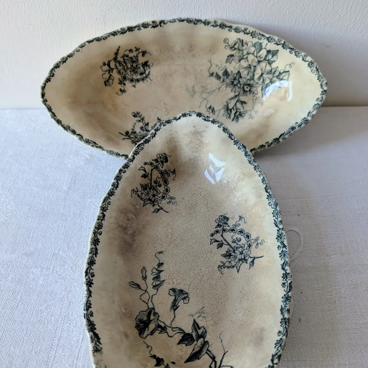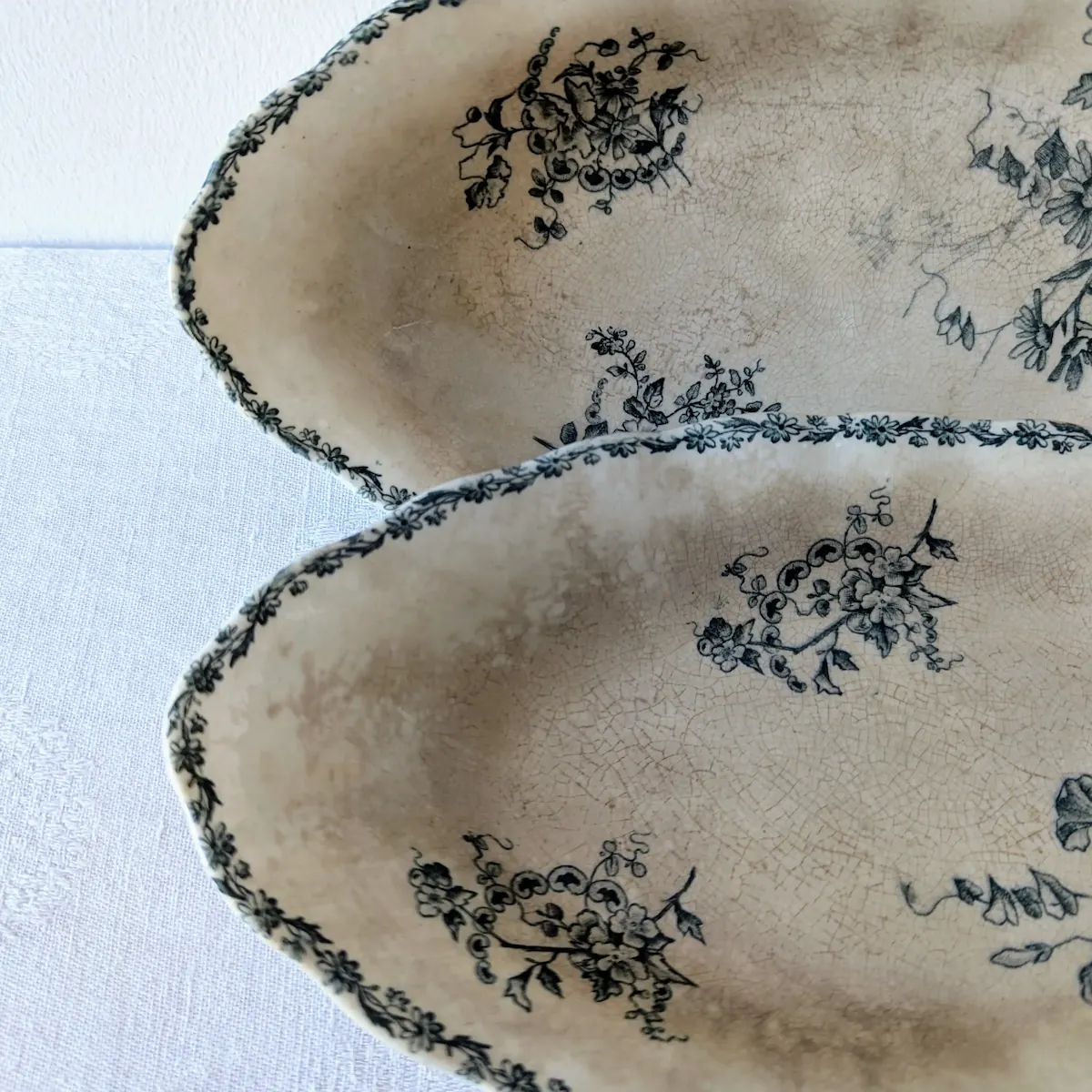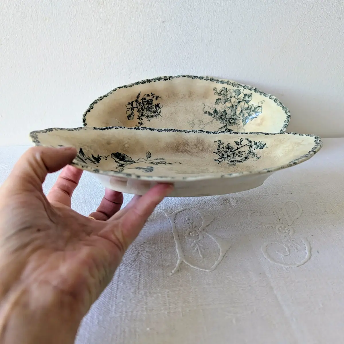 L’intégration de la vaisselle ancienne dans un intérieur contemporain permet de rompre la linéarité du mobilier moderne. Ce lot de raviers anciens apporte une décoration de caractère grâce à ses bords festonnés et sa silhouette allongée typique du XIXe siècle. Utiliser un objet authentique tel que celui-ci, c’est choisir une esthétique qui ne cherche pas la perfection, mais la vérité. Que ce soit pour servir des mets délicats ou pour sublimer des assiettes et services de table dépareillés, l’effet est immédiat : une atmosphère chaleureuse et habitée se dégage de votre espace.